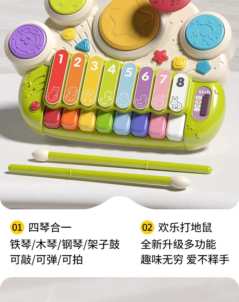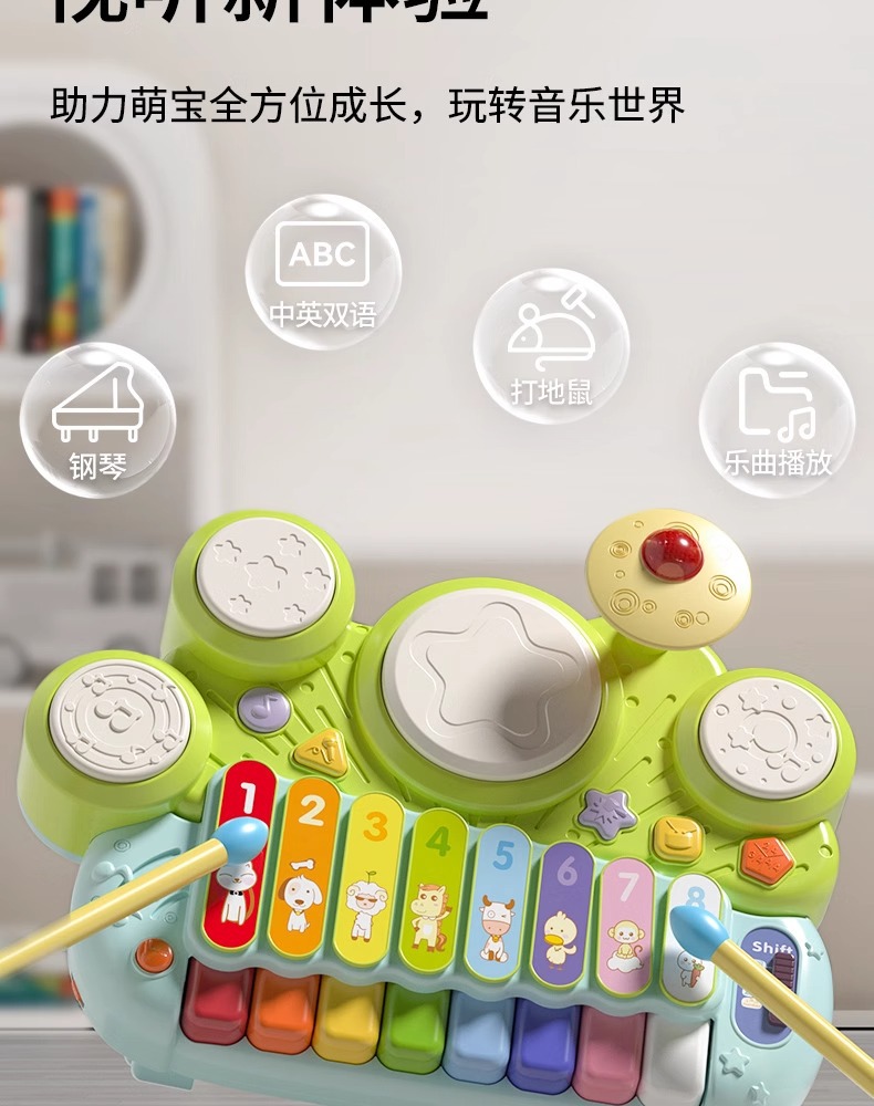 곡물 비 3502 어린이 전자 실로폰 게임 드럼 음악 아기 조기 교육 아기 계몽 다기능 장난감