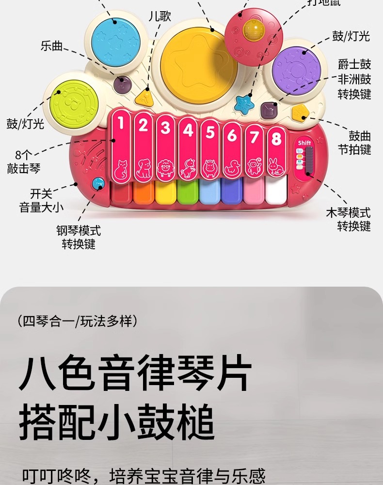 곡물 비 3502 어린이 전자 실로폰 게임 드럼 음악 아기 조기 교육 아기 계몽 다기능 장난감스토어 가기