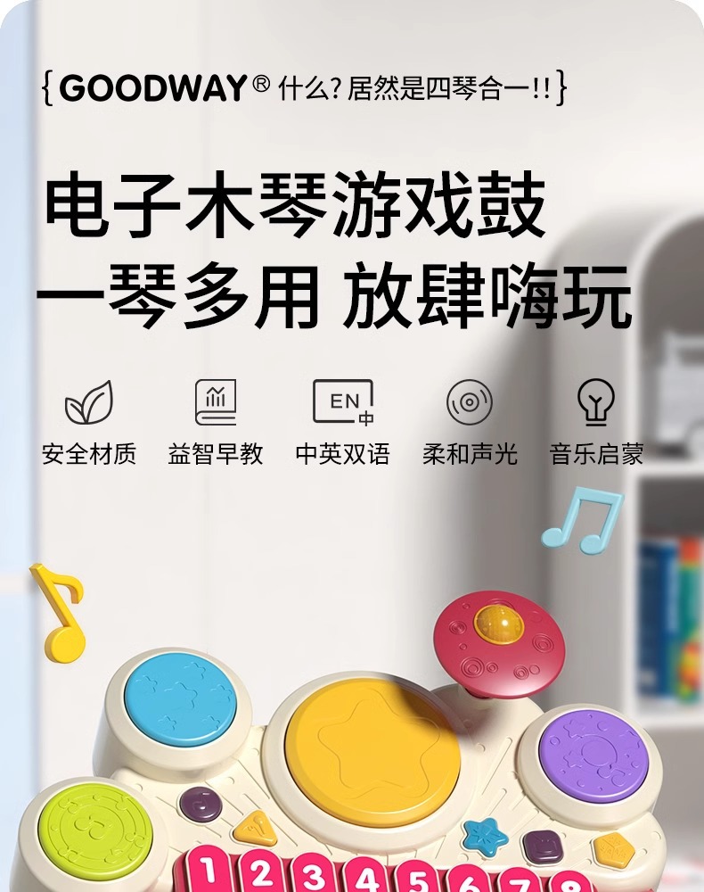 • Guyu 3502E 빨간색 전자 실로폰 게임 드럼 [자체 배터리 버전]