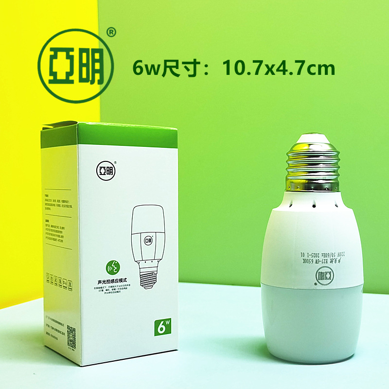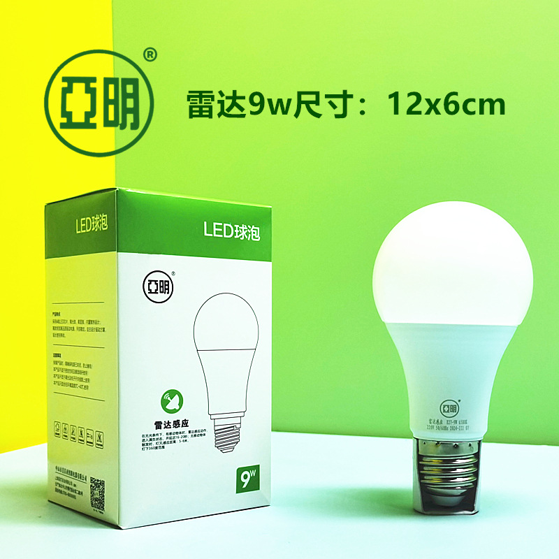 亚明LED声光控灯泡楼梯间楼道感应节能灯5w10w6w智能雷达球泡