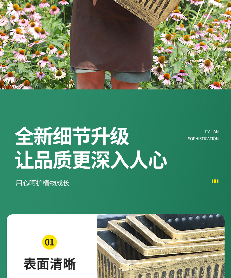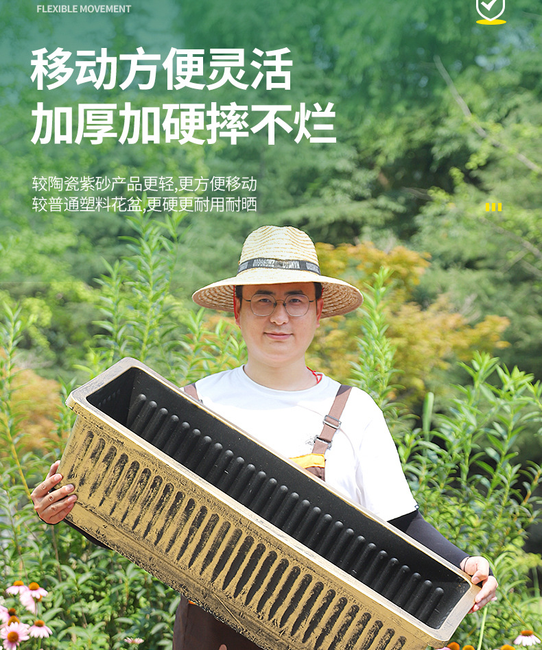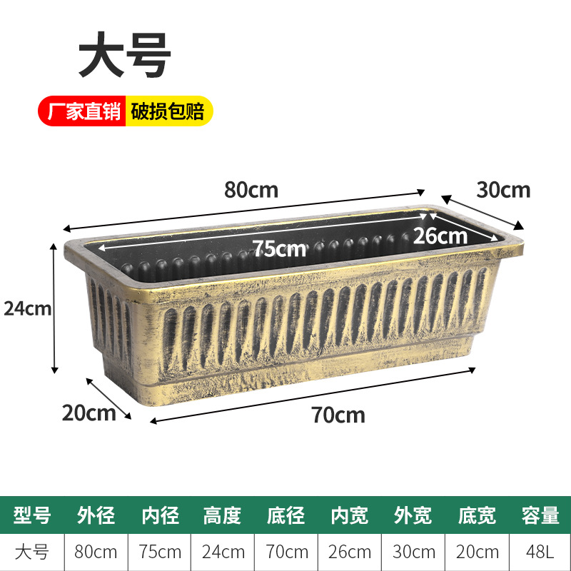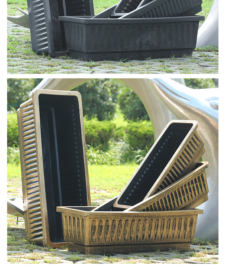 대형 직사각형 두꺼운 수지 플라스틱 화분, 발코니 실내외 채소 재배 수경재배 긴 마조형 화분, 앤티크 스타일