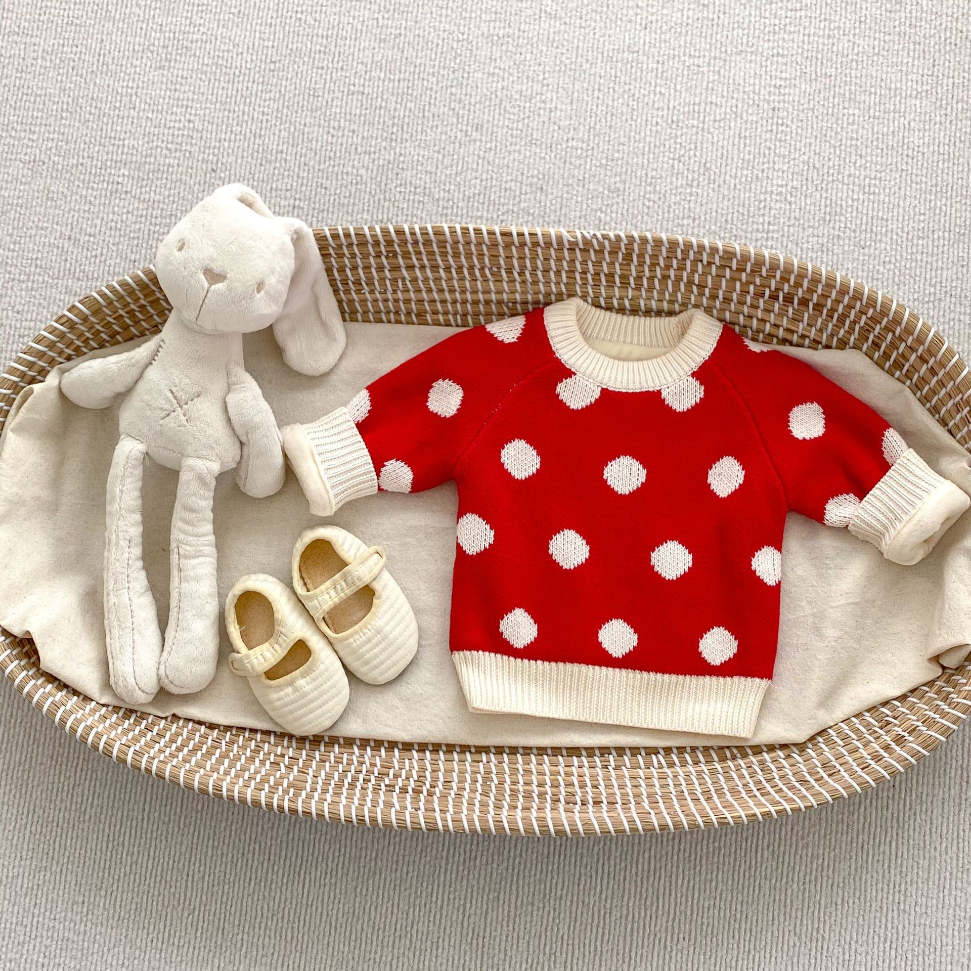ins婴童套装2023春款婴儿宝宝圆点套头毛衣背带裤洋气外出两件套