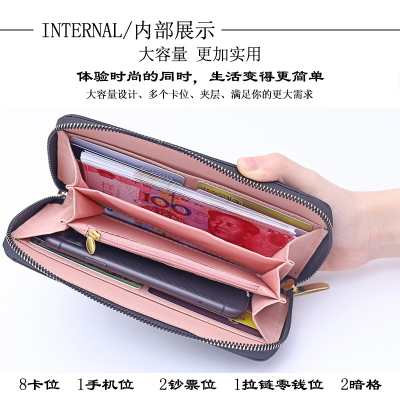 새 지갑 여성의 긴 간단한 패션 지퍼 가방 휴대 전화 클러치 백 어머니 가방 대용량 지갑을 담을 수 있습니다