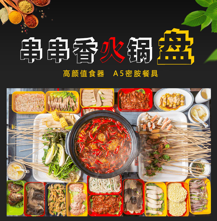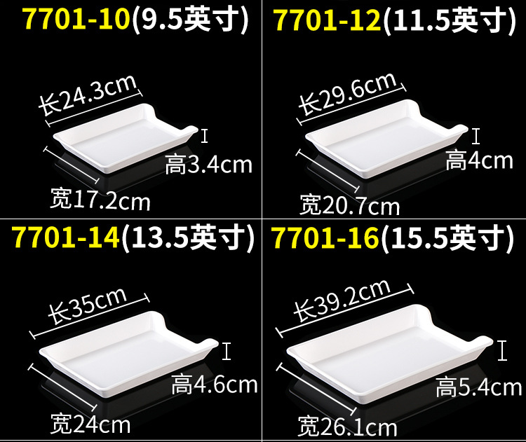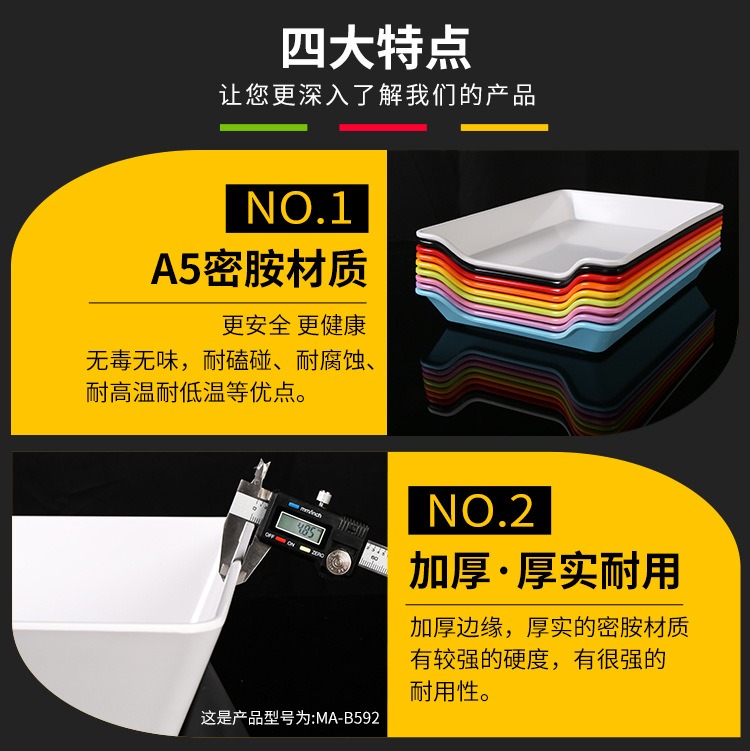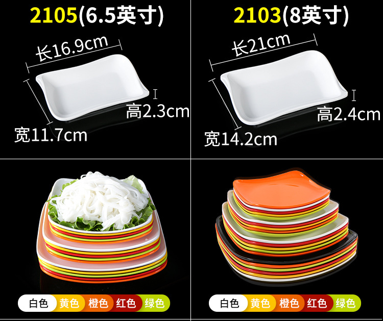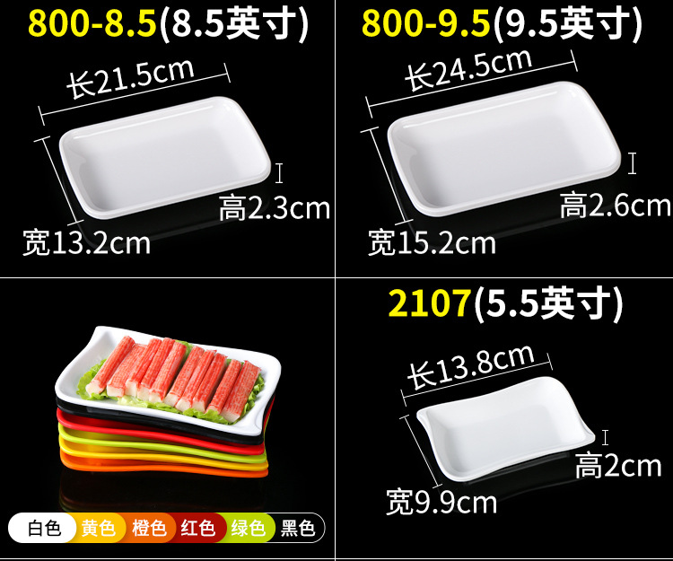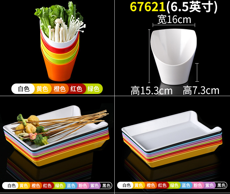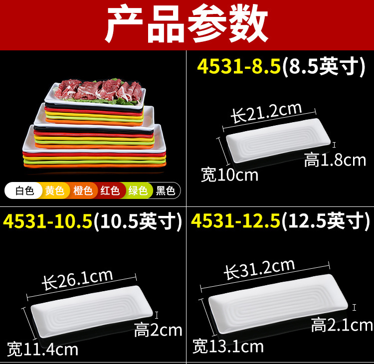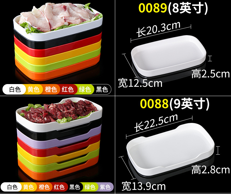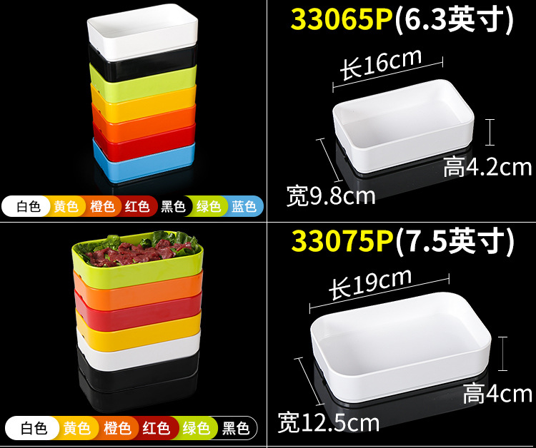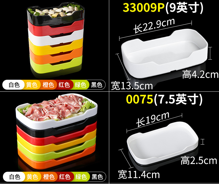 멜라민 직사각형 스튜디오 뷔페용 접시, 핫팟 및 바베큐 반찬 접시, 상업용 쌓을 수 있는 모조 도자기 식기