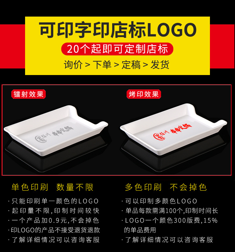 멜라민 직사각형 스튜디오 뷔페용 접시, 핫팟 및 바베큐 반찬 접시, 상업용 쌓을 수 있는 모조 도자기 식기스토어 가기