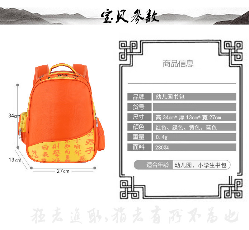 Guoxue 유치원 책가방 도매 인쇄 로고 중국식 소년 소녀 어린이 훈련 광고 배낭스토어 가기