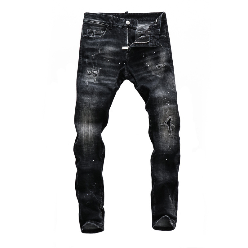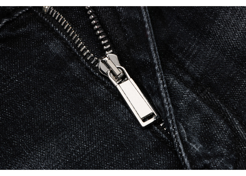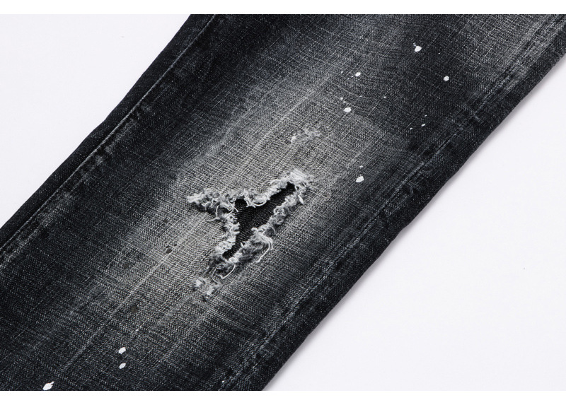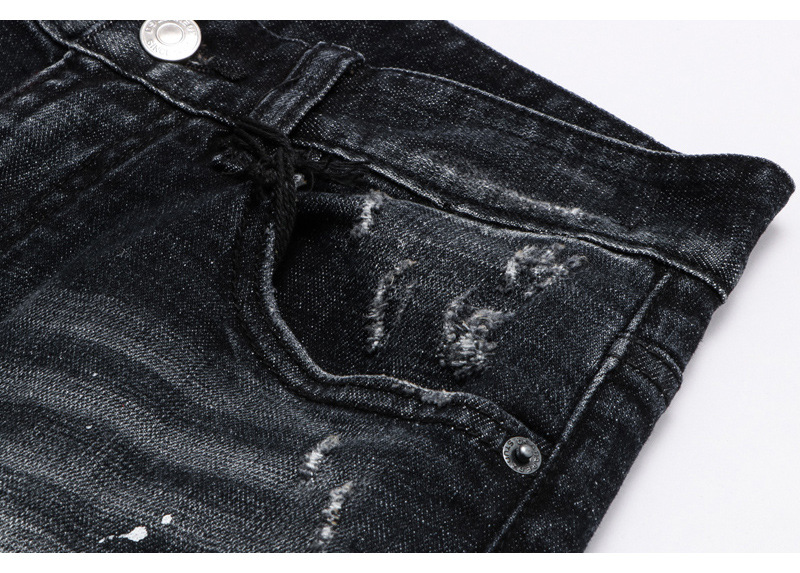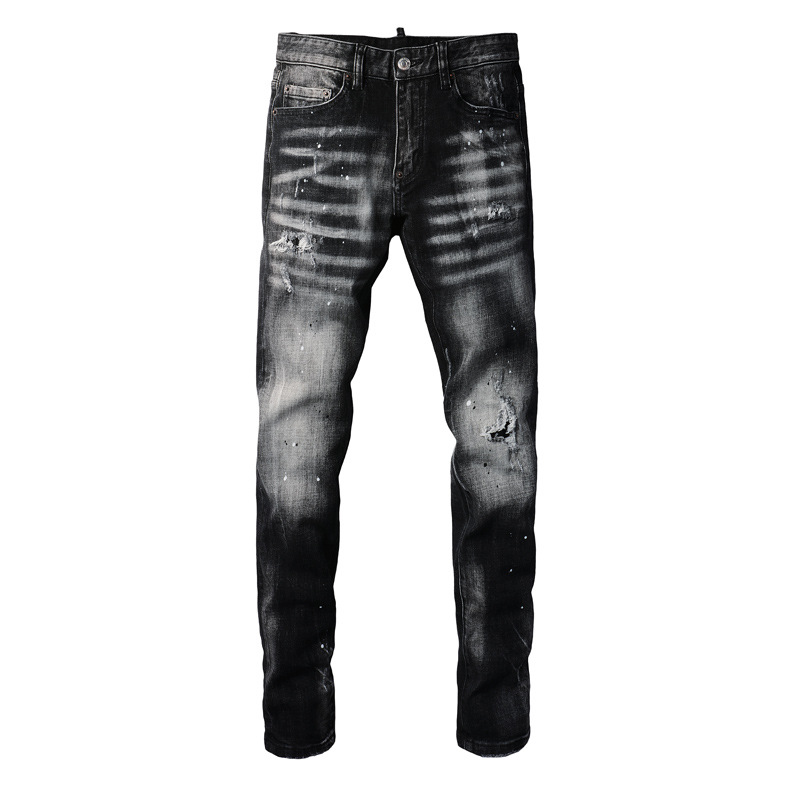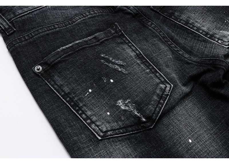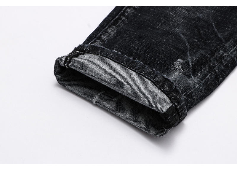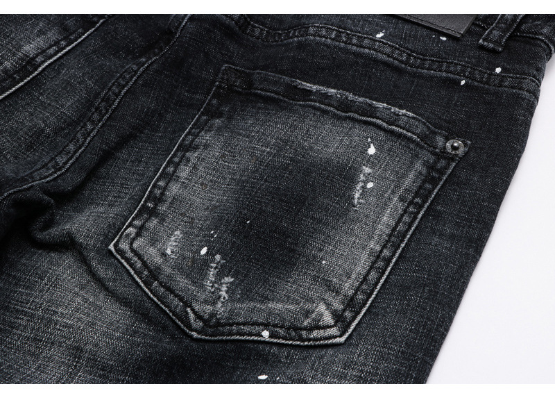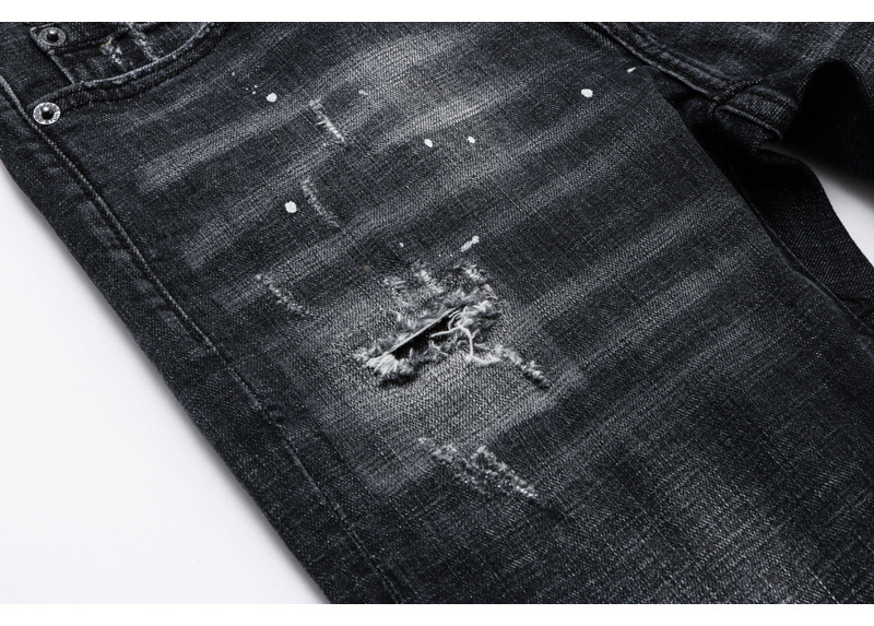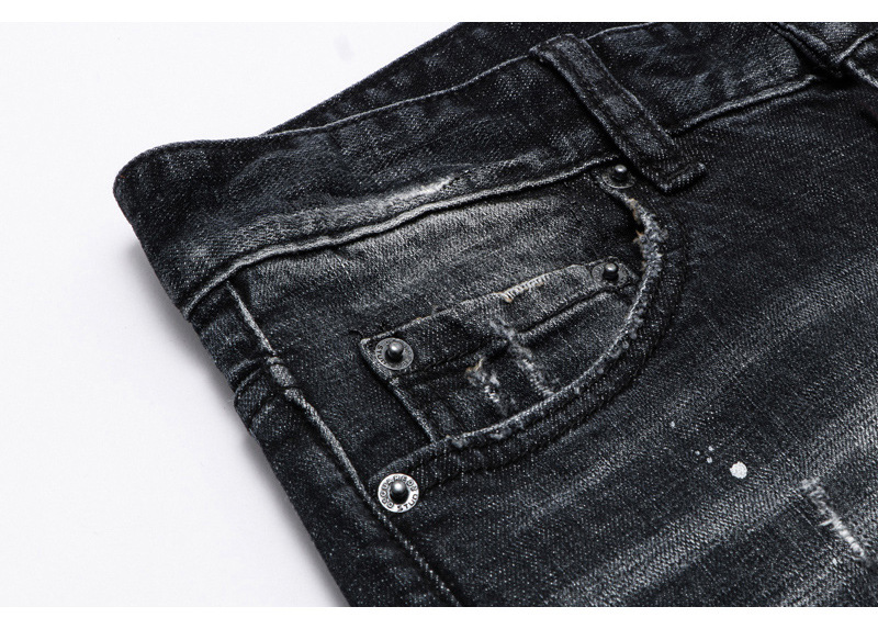 유럽과 미국 하이 스트리트 패션 찢어진 남성 청바지 레트로 골동품 올드 블랙 그레이 마이크로 불릿 슬림핏 홍콩 스타일 스트리트 트렌디 한 남성용 바지