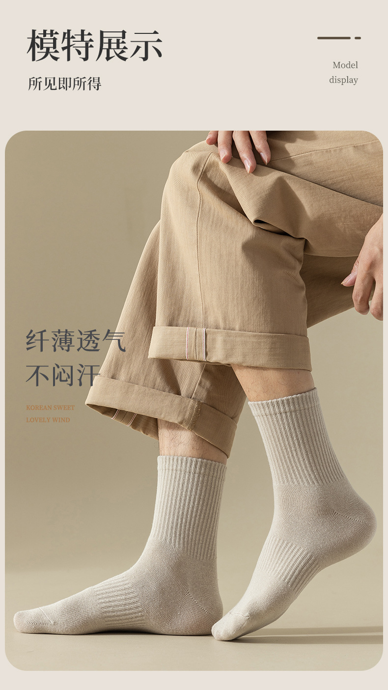 양말 남성용 중목양말 봄여름 무지 면양말 땀흡수 통기성 농구 스포츠 양말 커플 양말 인스타 트렌드