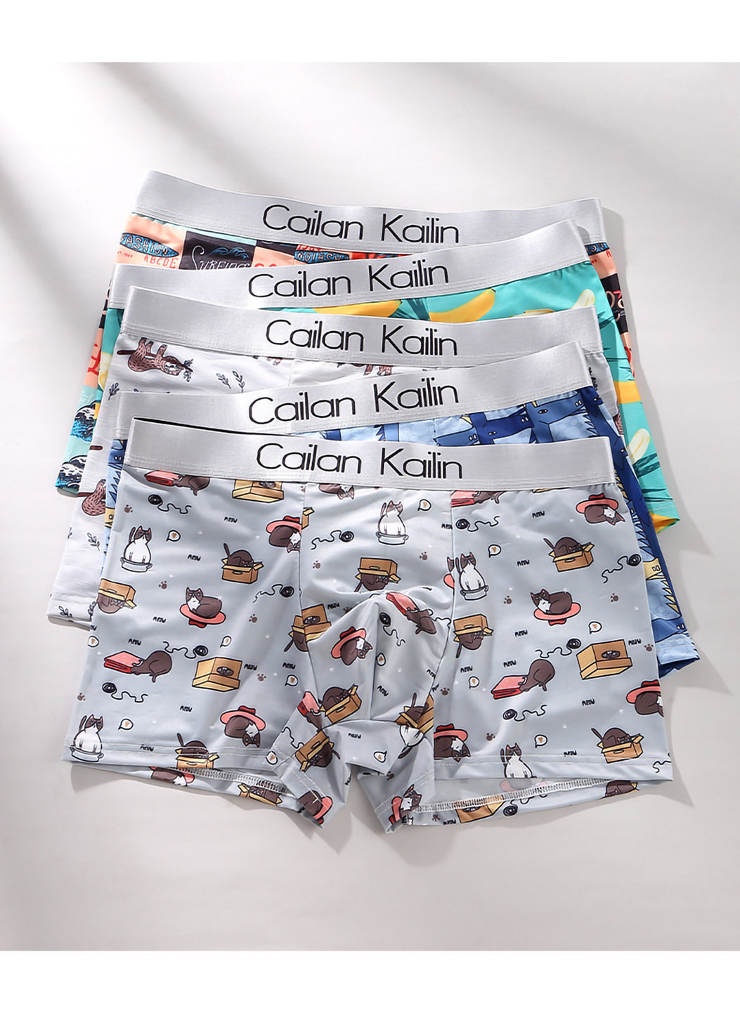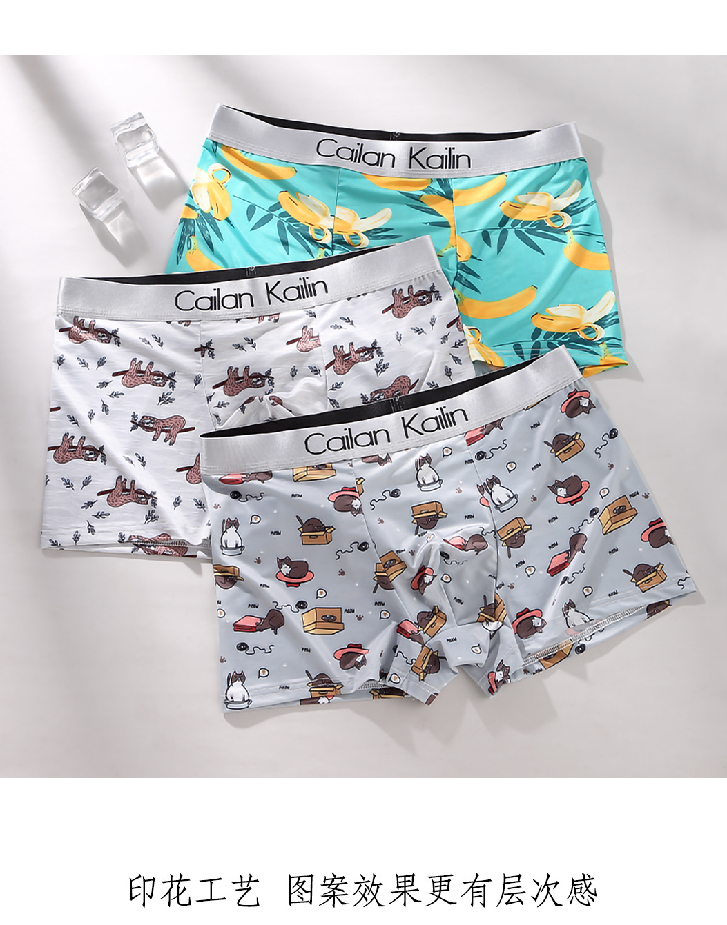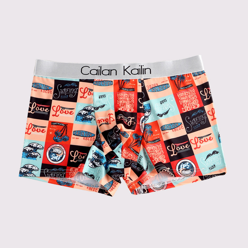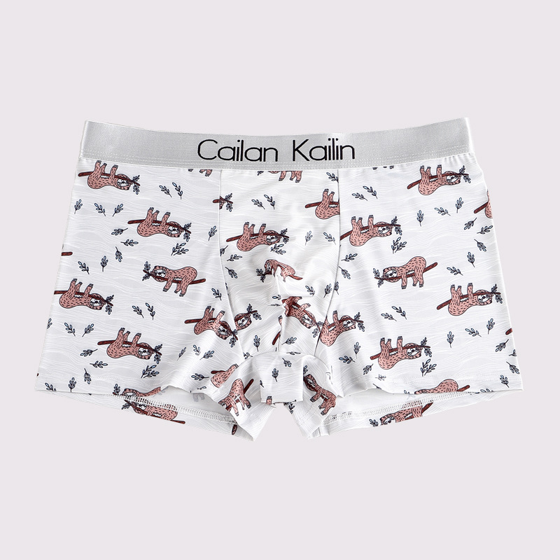 재고 도매 남자의 아이스 실크 인쇄 속옷 학생 느슨한 복서 바지 귀여운 만화 복서 바지 멋진 바지