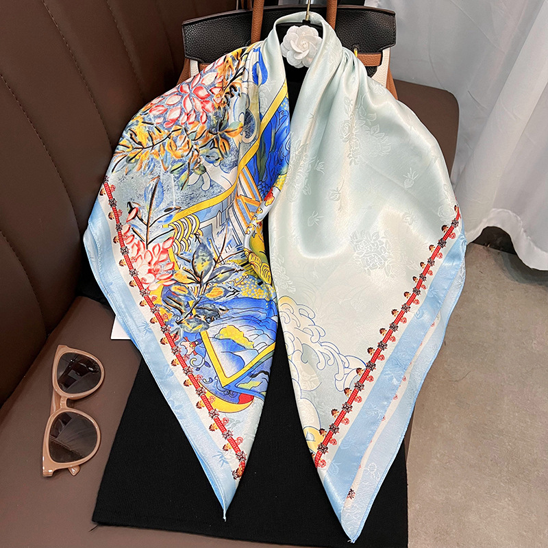 90cm 대형 스퀘어 스카프 여성의 실크 스카프 봄과 가을 새로운 유행 2022 한국 스타일 가을과 겨울 스카프 세트 여성 숄