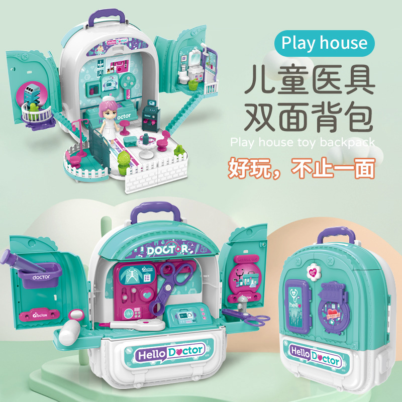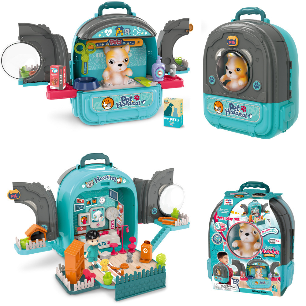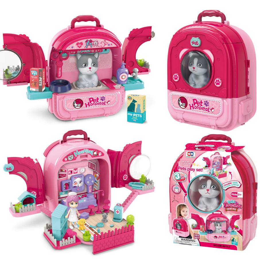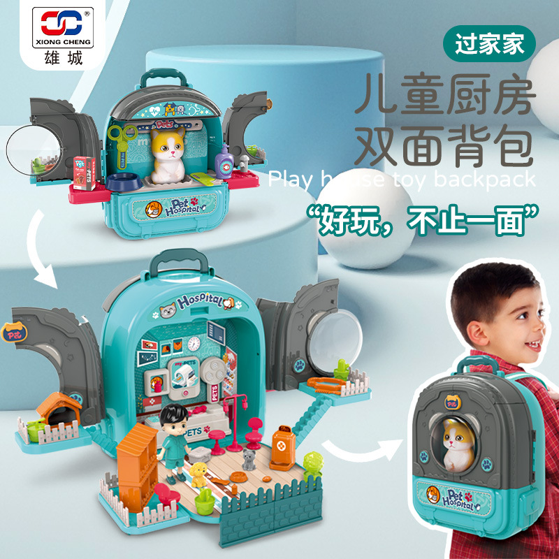 국경 간 어린이 애완 동물 배낭 놀이 집 시뮬레이션 주방 요리 식기 드레싱 의료 도구 배낭 장난감스토어 가기