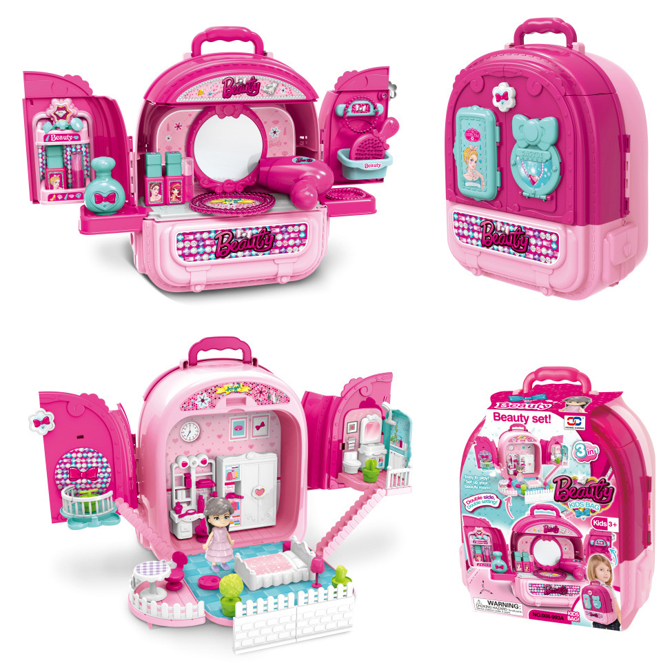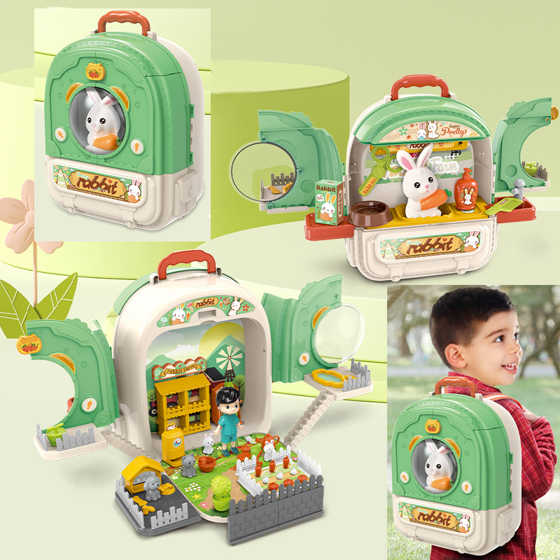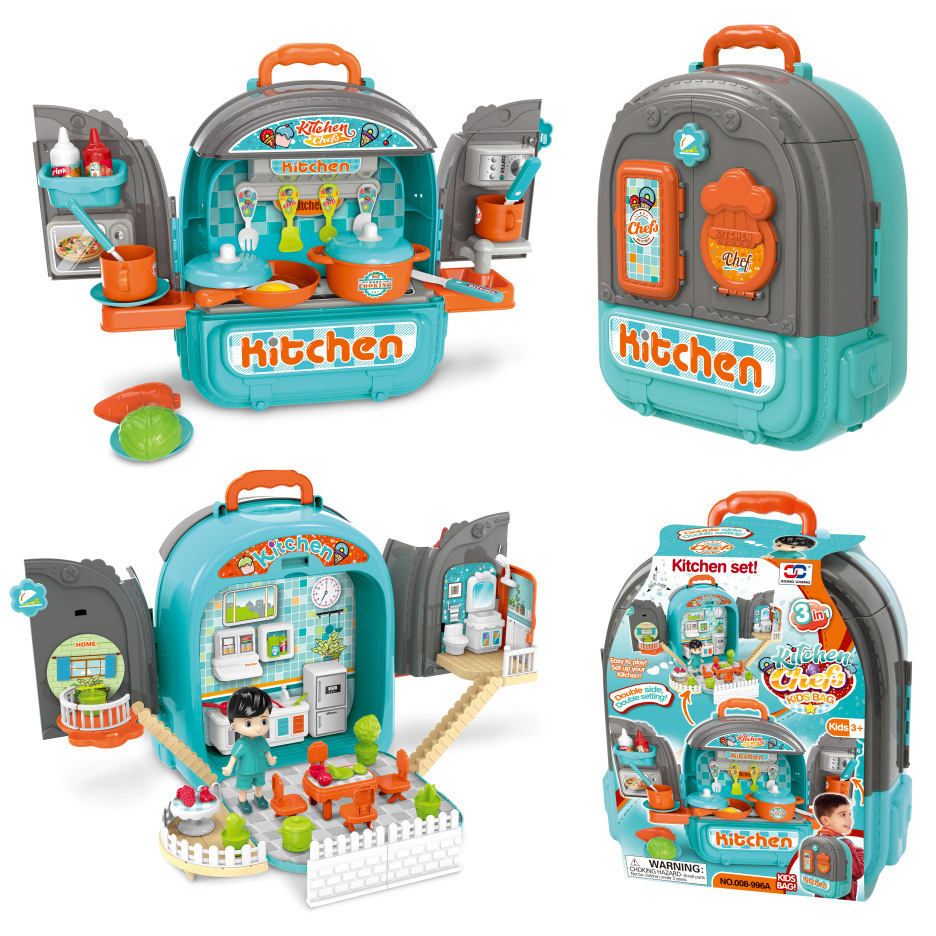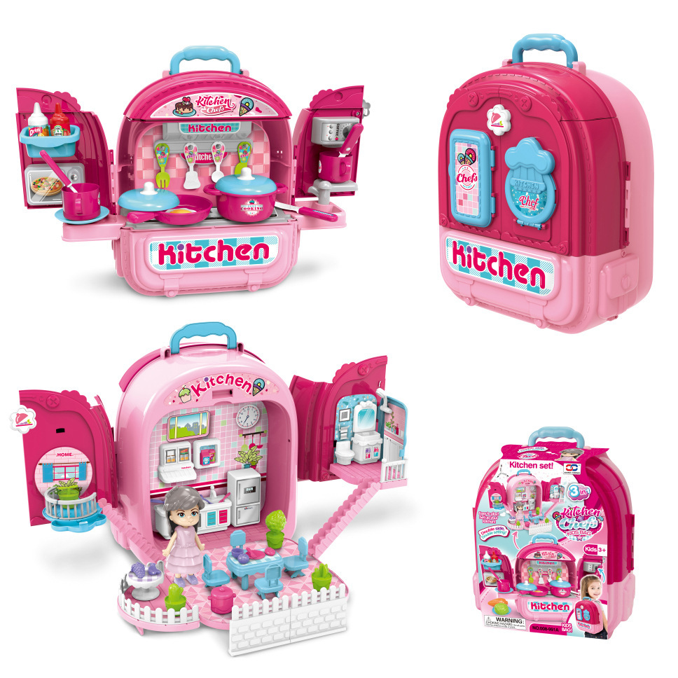 국경 간 어린이 애완 동물 배낭 놀이 집 시뮬레이션 주방 요리 식기 드레싱 의료 도구 배낭 장난감스토어 가기