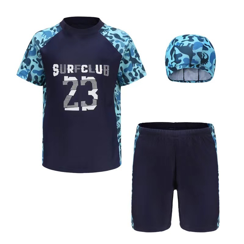 • 新款儿童泳衣男孩宝宝游泳衣男童泳帽温泉防晒中大童游泳裤套装批折扣价:¥25.0