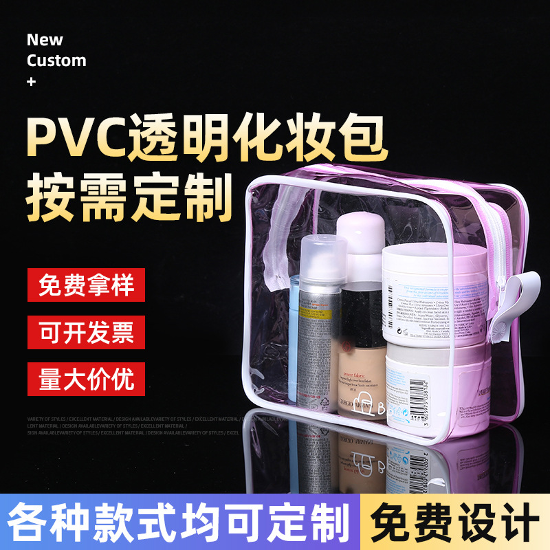 Pvc 휴대용 화장품 가방 사용자 정의 대용량 방수 화장품 보관 세척 가방 여행 투명 지퍼 가방