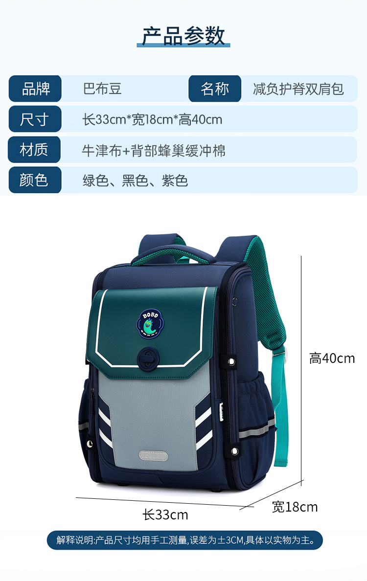 Babu Bean 어린이 책가방 초등학생 1 ~ 3 학년 ~ 4 학년 남학생 경량 척추 감소 배낭