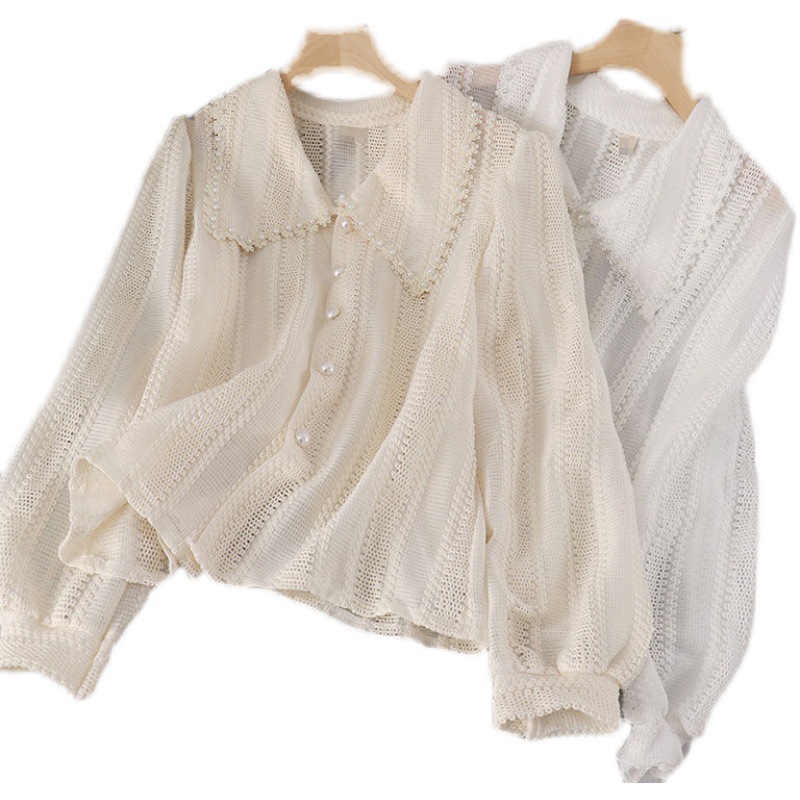 2022 년 초 봄 새로운 여성 패션 요정 최고 여성 슈퍼 페어리 인형 칼라 화이트 셔츠 디자인 센스스토어 가기
