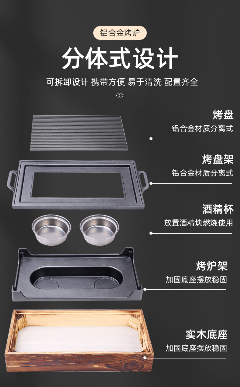 상업용 알루미늄 합금 한국 바베큐 오븐 레스토랑 숯 알코올 구이 생선 꼬치 절연 숯 바베큐 플레이트 가열 오븐