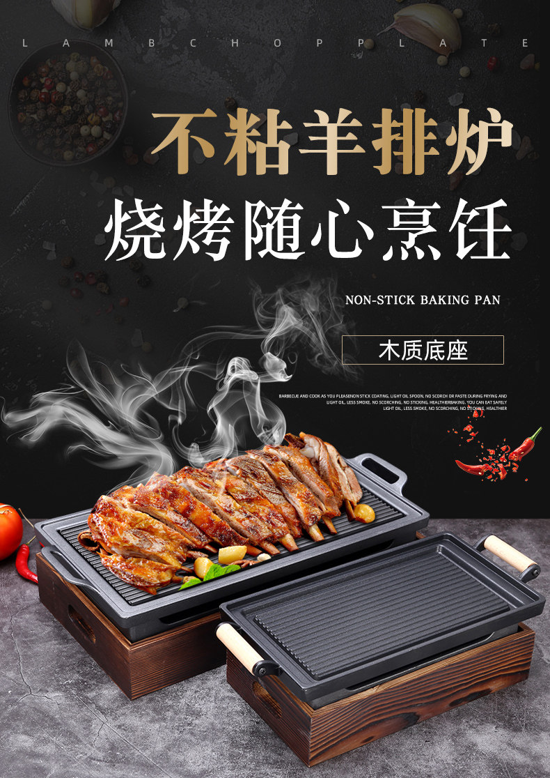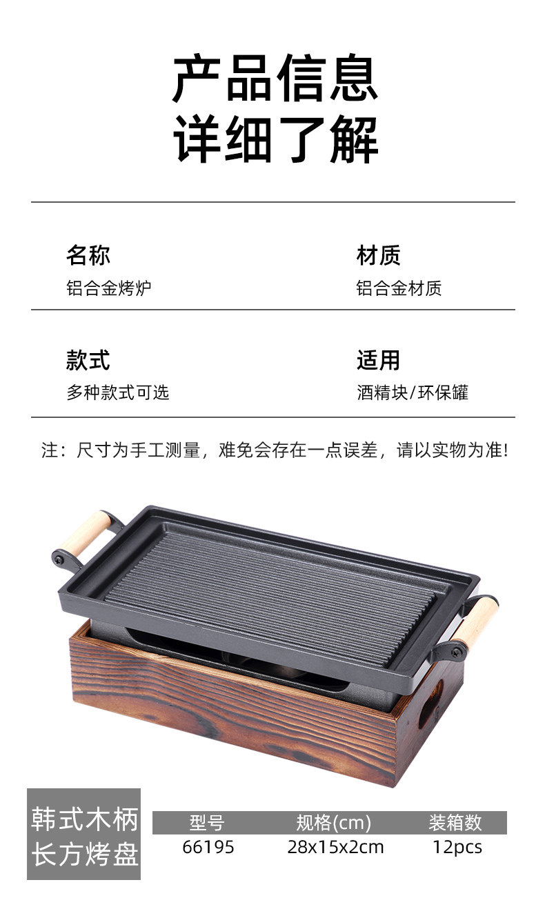 • 2 번 한국식 사각 베이킹 팬 나무 손잡이 18*2CM 194-2