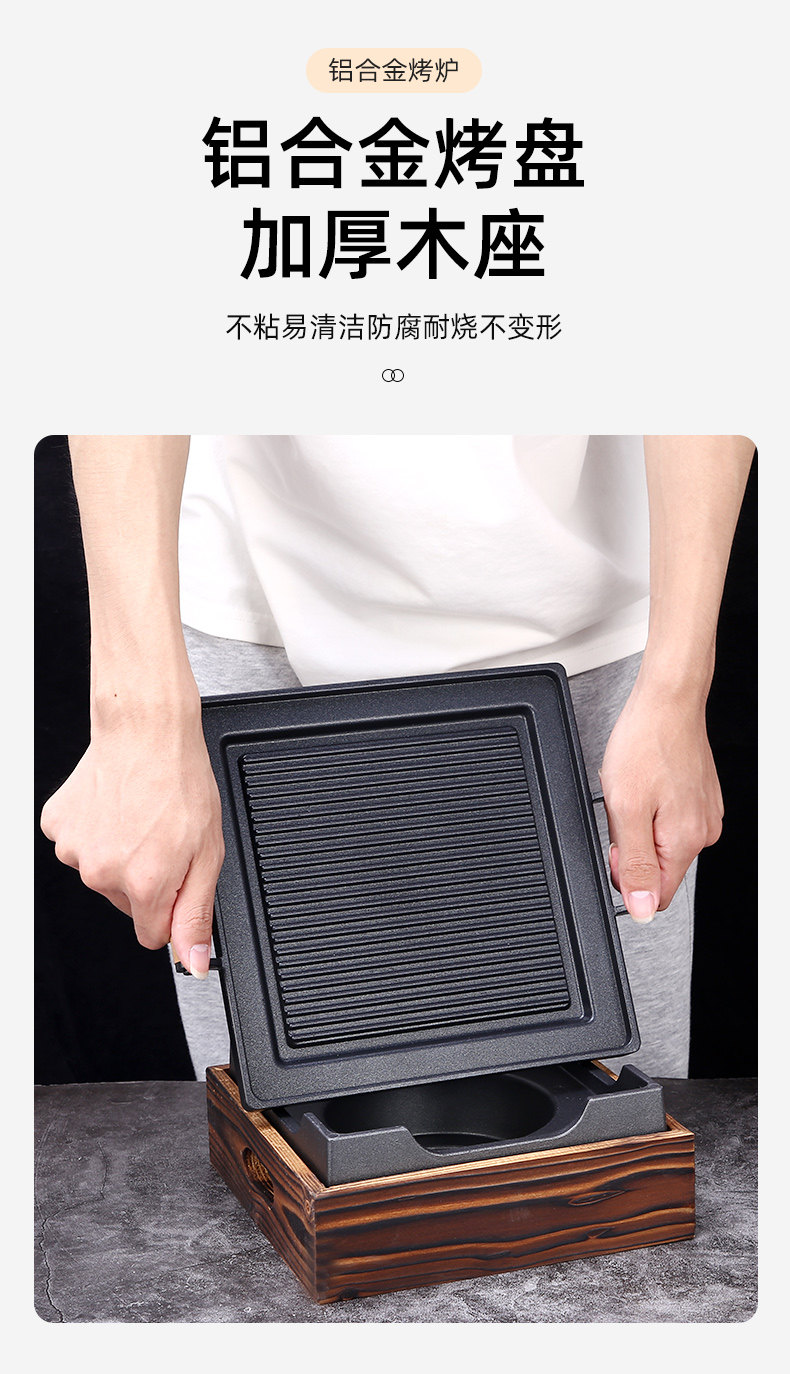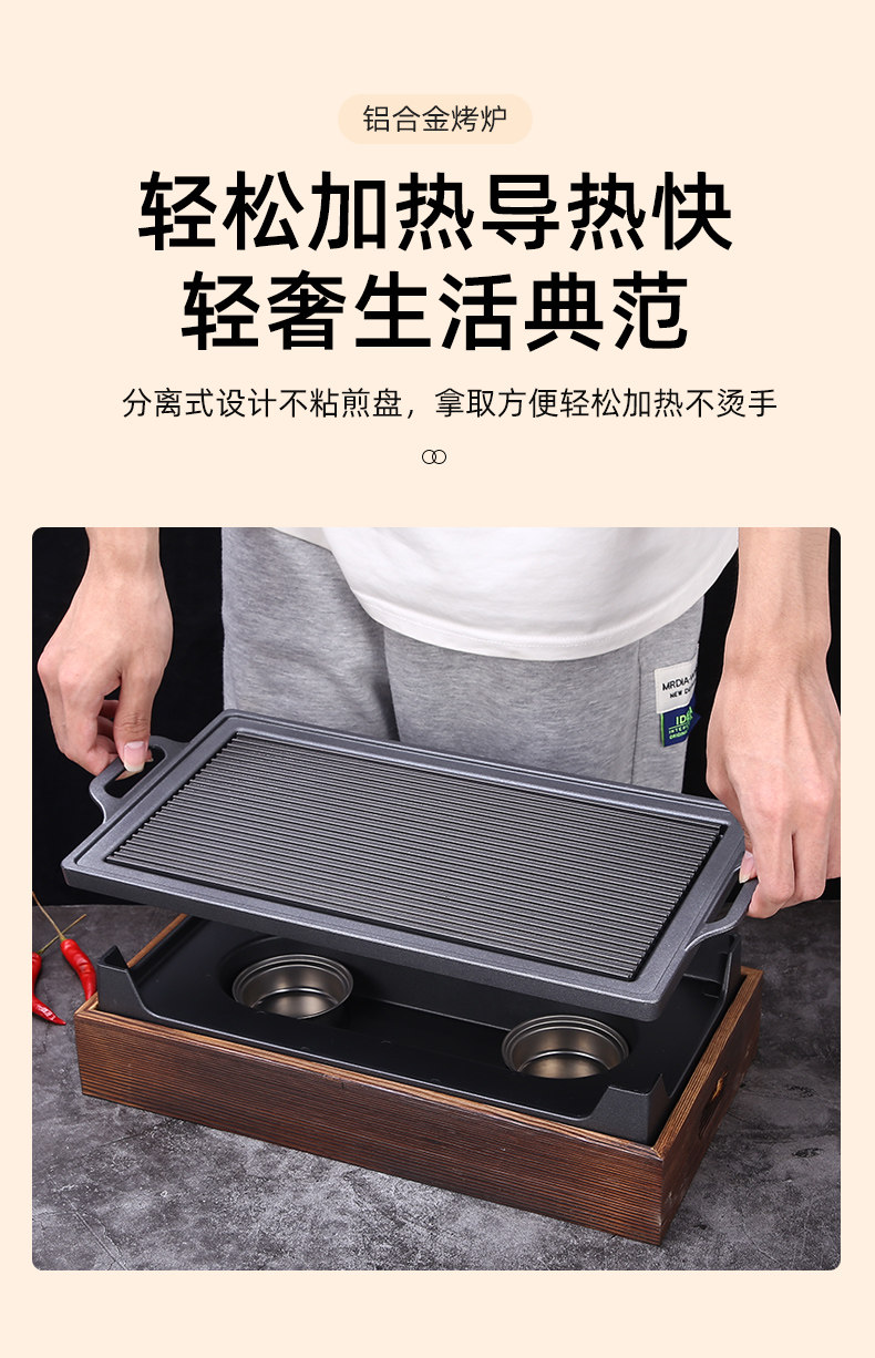 상업용 알루미늄 합금 한국 바베큐 오븐 레스토랑 숯 알코올 구이 생선 꼬치 절연 숯 바베큐 플레이트 가열 오븐스토어 가기
