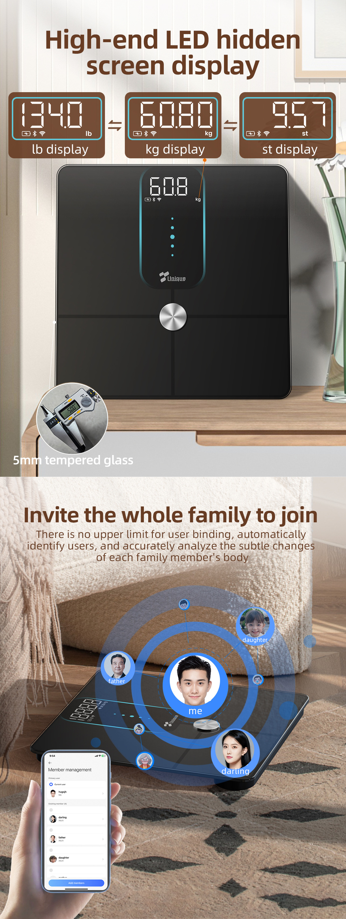 显示单位:KG显示可切换LB(磅)