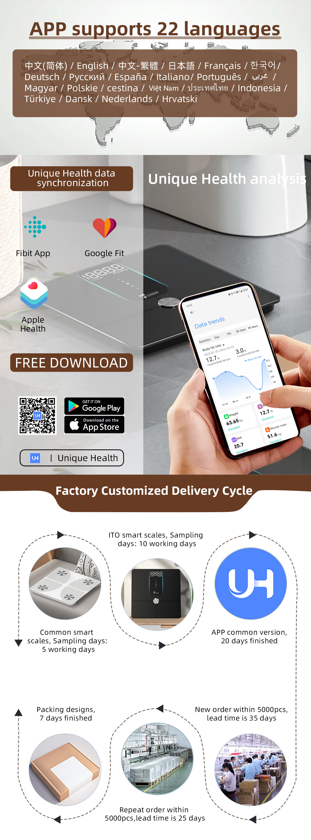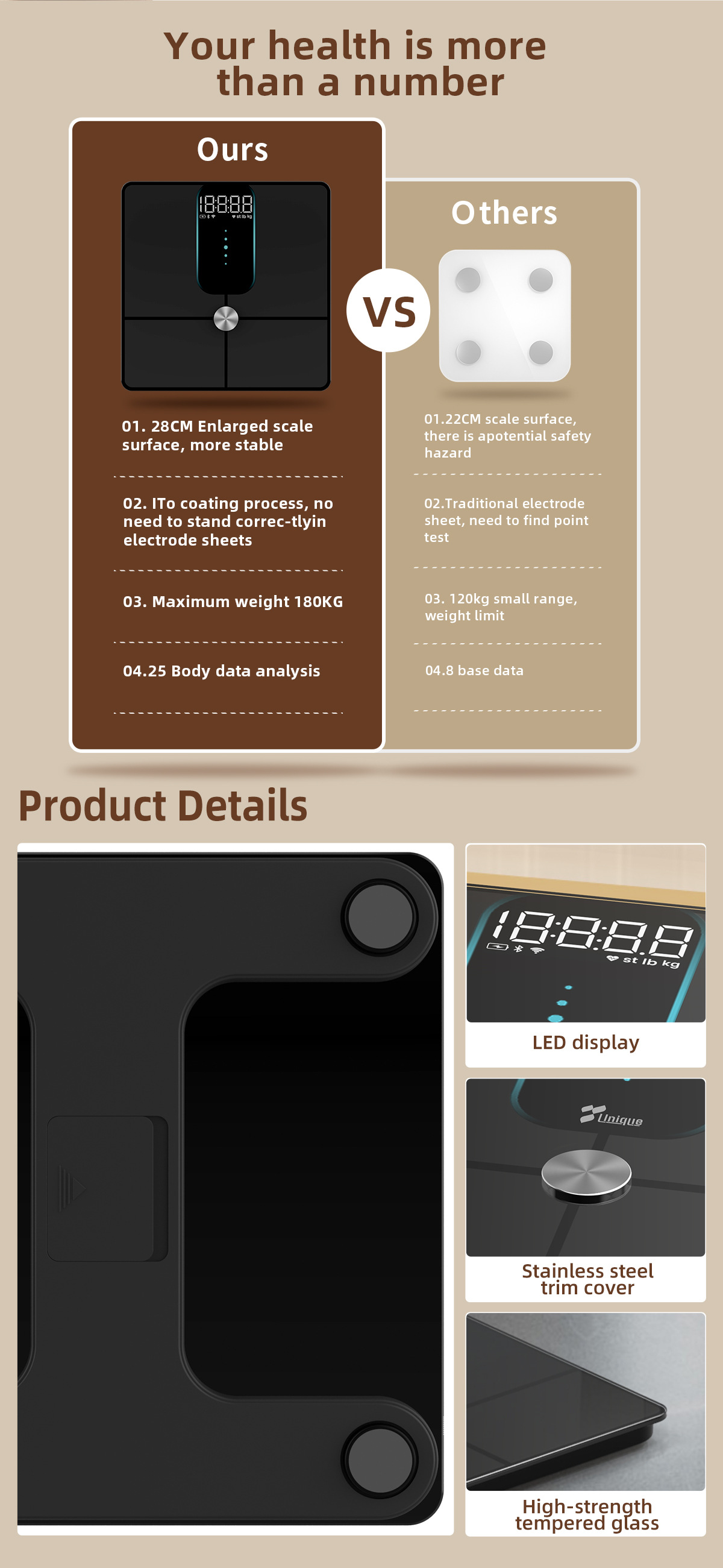 我们支持常规的定制:秤面ID设计,更改玻璃秤面颜色,印刷你喜欢的图片,更改包装印刷说明书印刷都可以