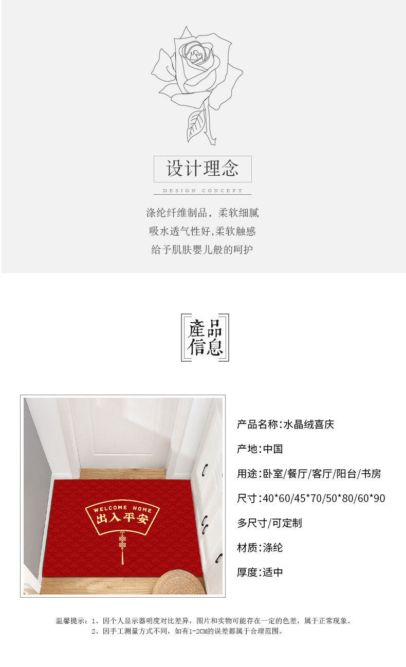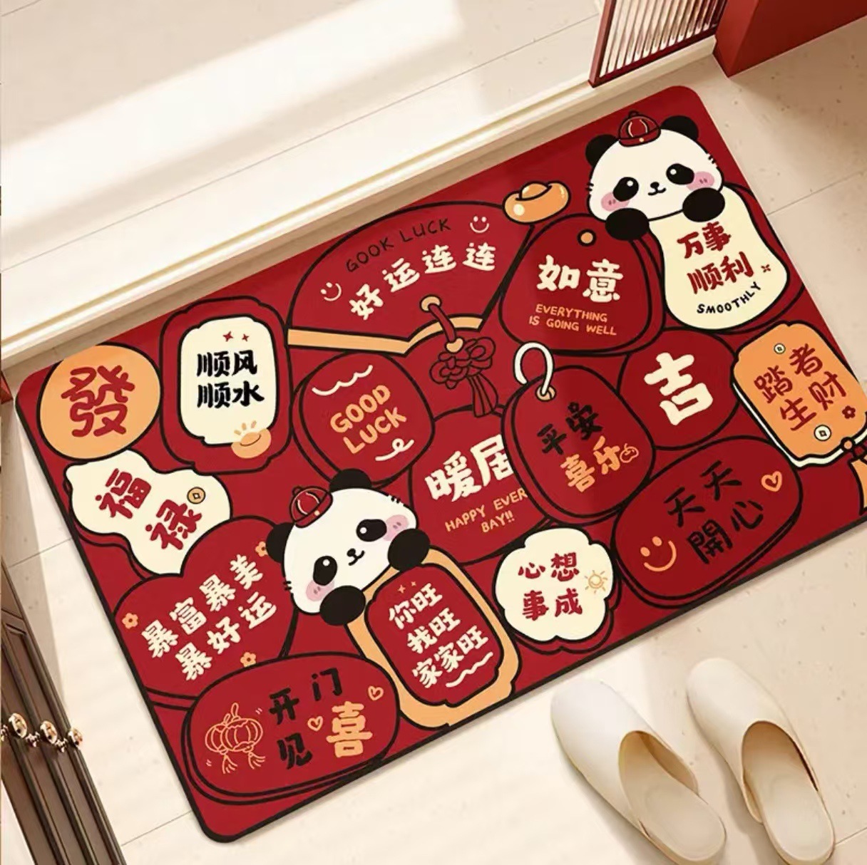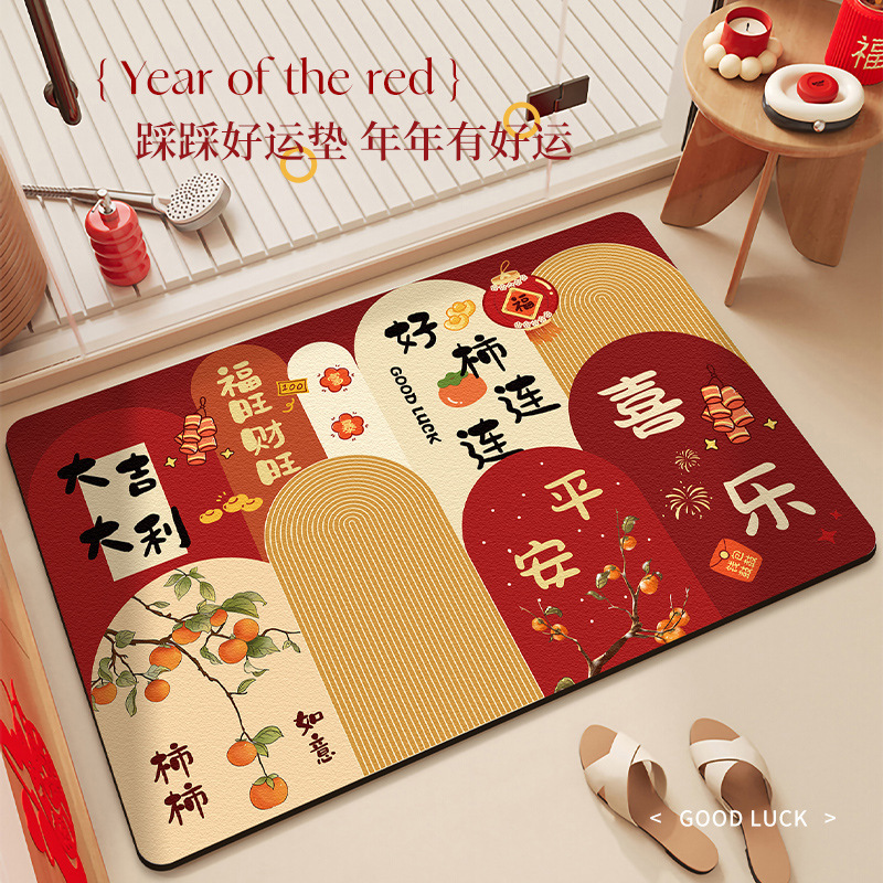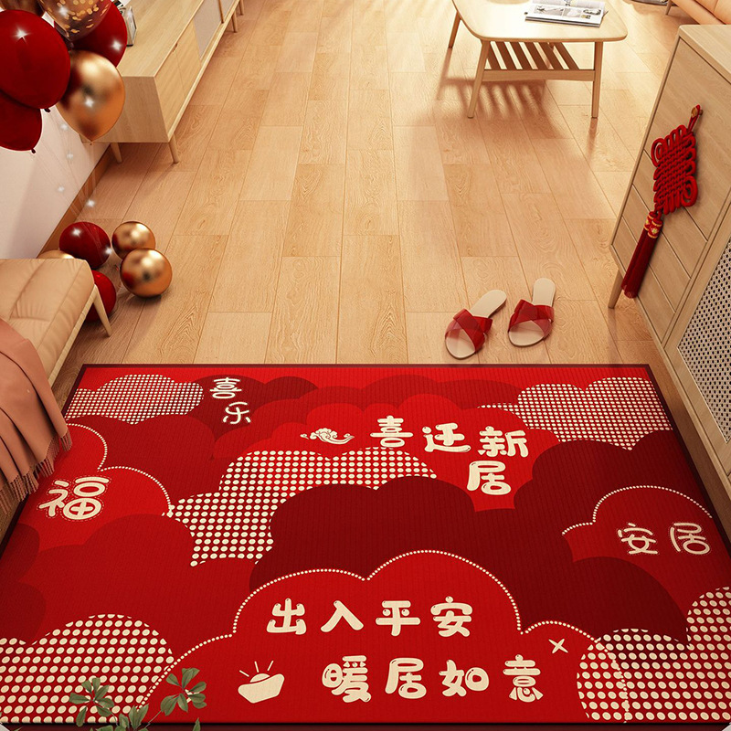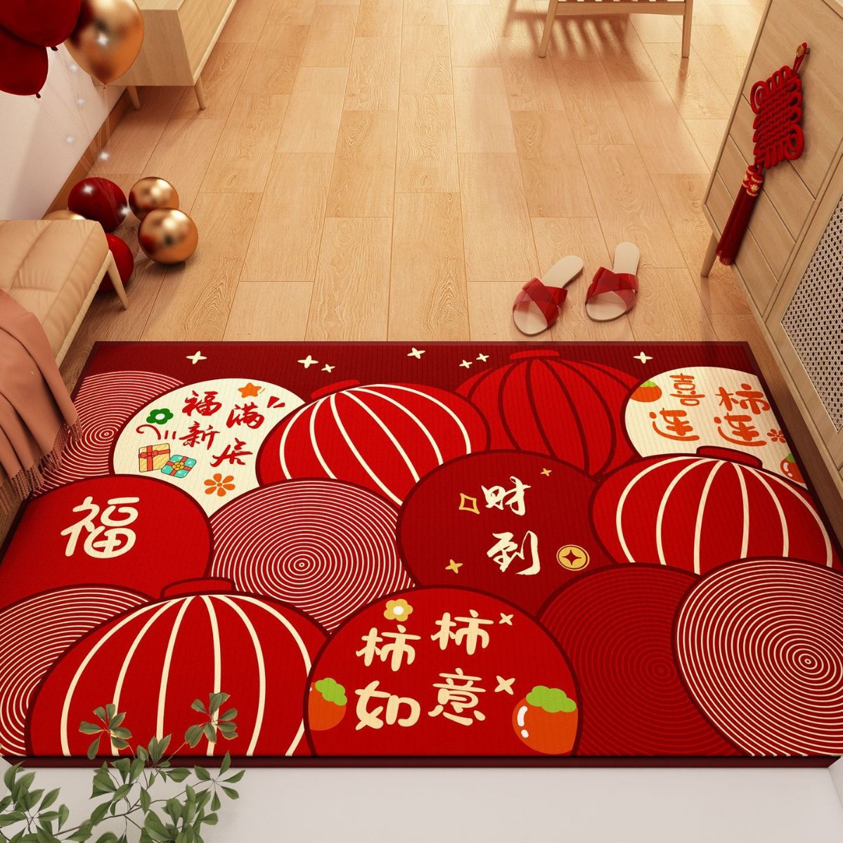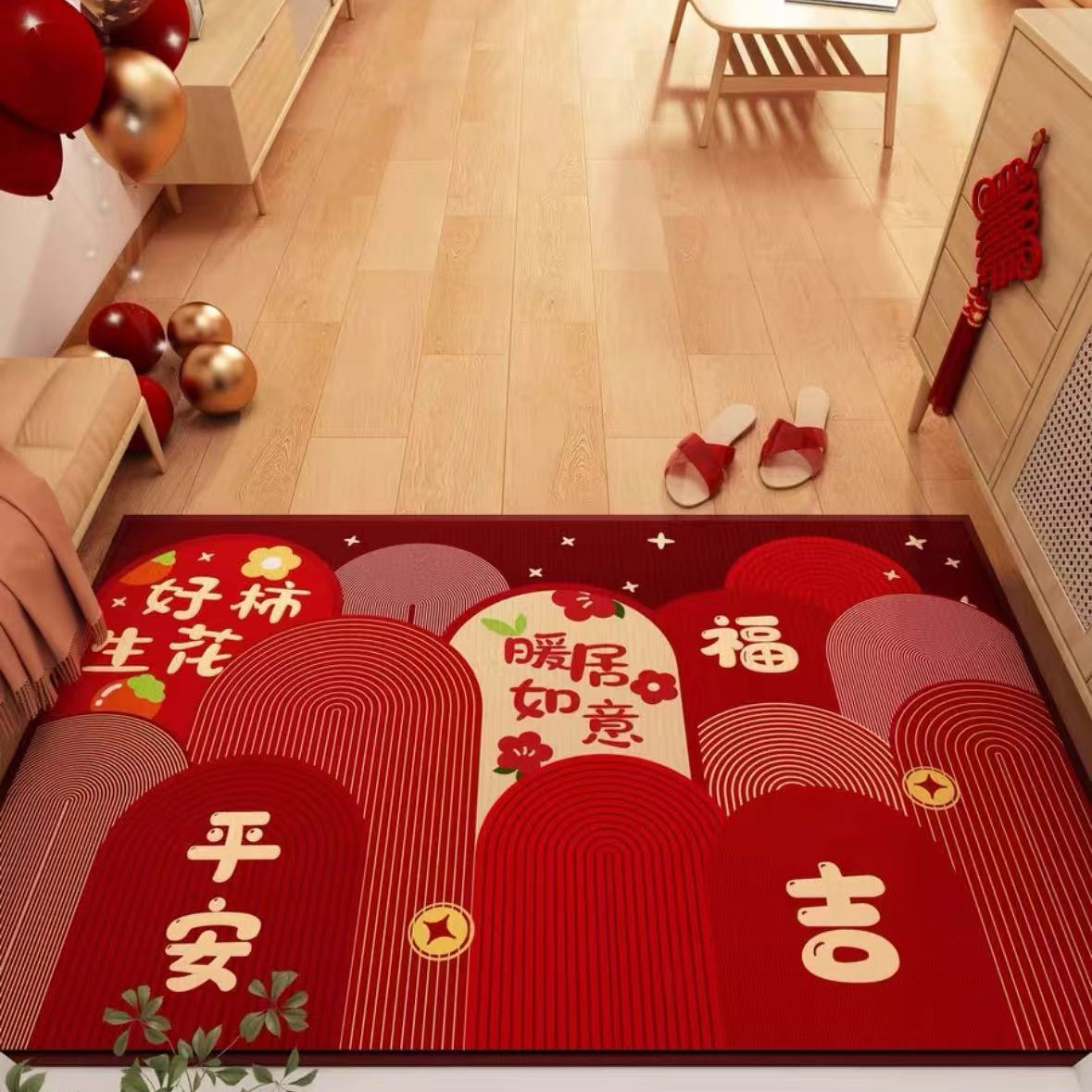 새해맞이 축제용 빨간색 바닥매트 현관문 카펫 미끄럼 방지 및 오염 방지 현관 발매트 설날용 도어매트 현관 전용