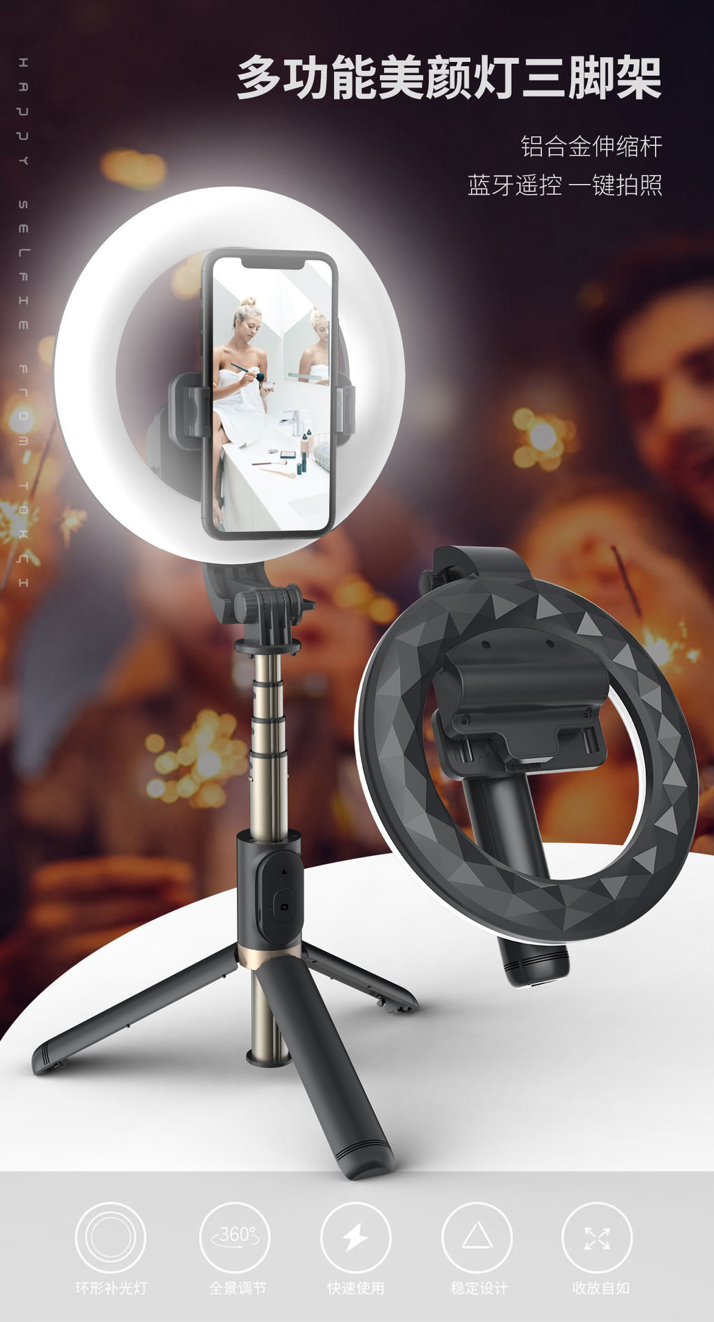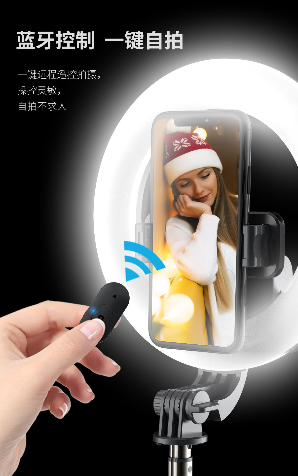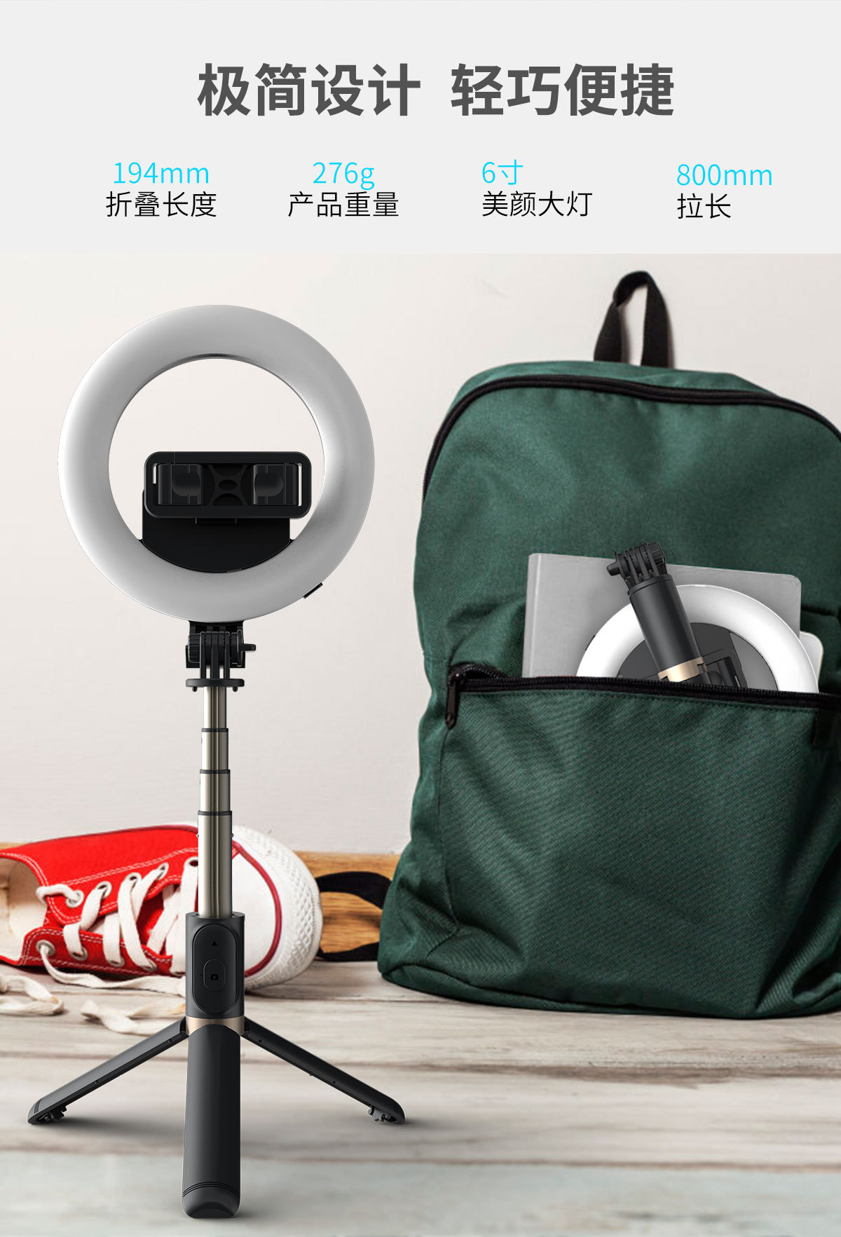 | Q07 便携6寸大灯蓝牙三脚架自拍杆 | |||