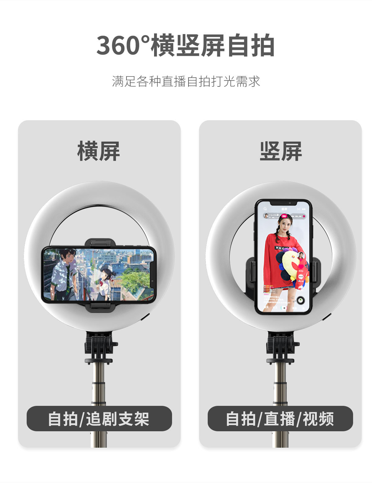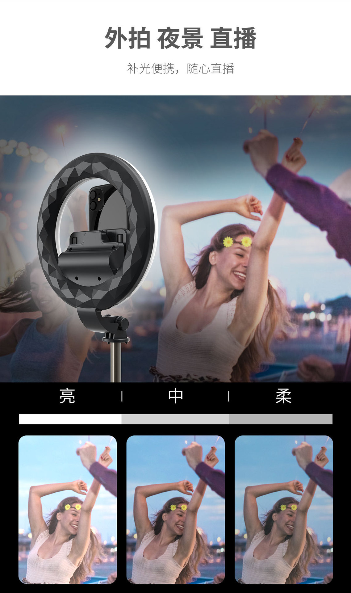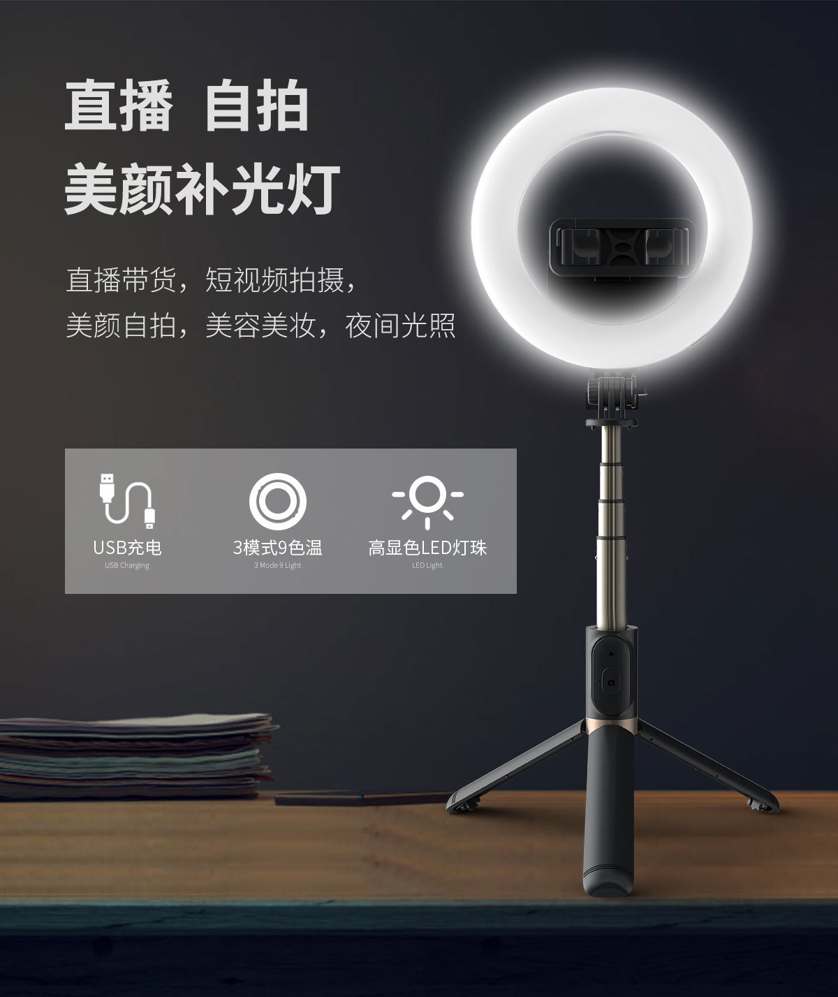 | Q07 便携6寸大灯蓝牙三脚架自拍杆 | |||