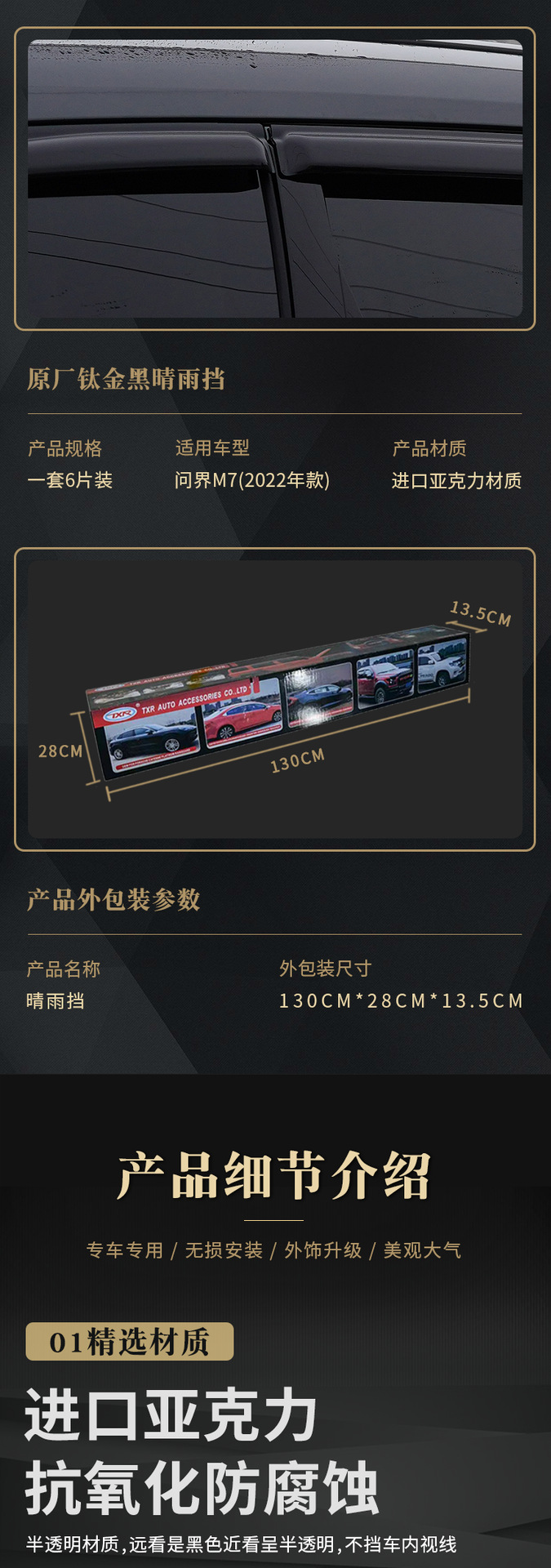 Terxinrui는 22 경계 M7 레인 기어 3D 스테인레스 스틸 밝은 가장자리 비 눈썹 창 레인 쉴드 자동차 부품에 적합합니다스토어 가기