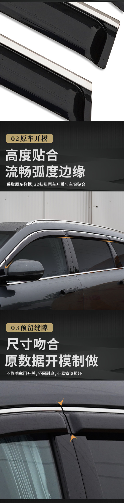 Terxinrui는 22 경계 M7 레인 기어 3D 스테인레스 스틸 밝은 가장자리 비 눈썹 창 레인 쉴드 자동차 부품에 적합합니다