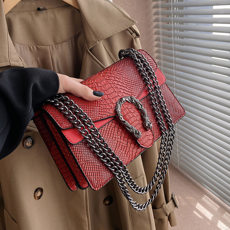 패셔너블한 여성용 체인 크로스바디 숄더백 2025년 신상 더블 수납칸 플랩백 악어무늬 가방스토어 가기