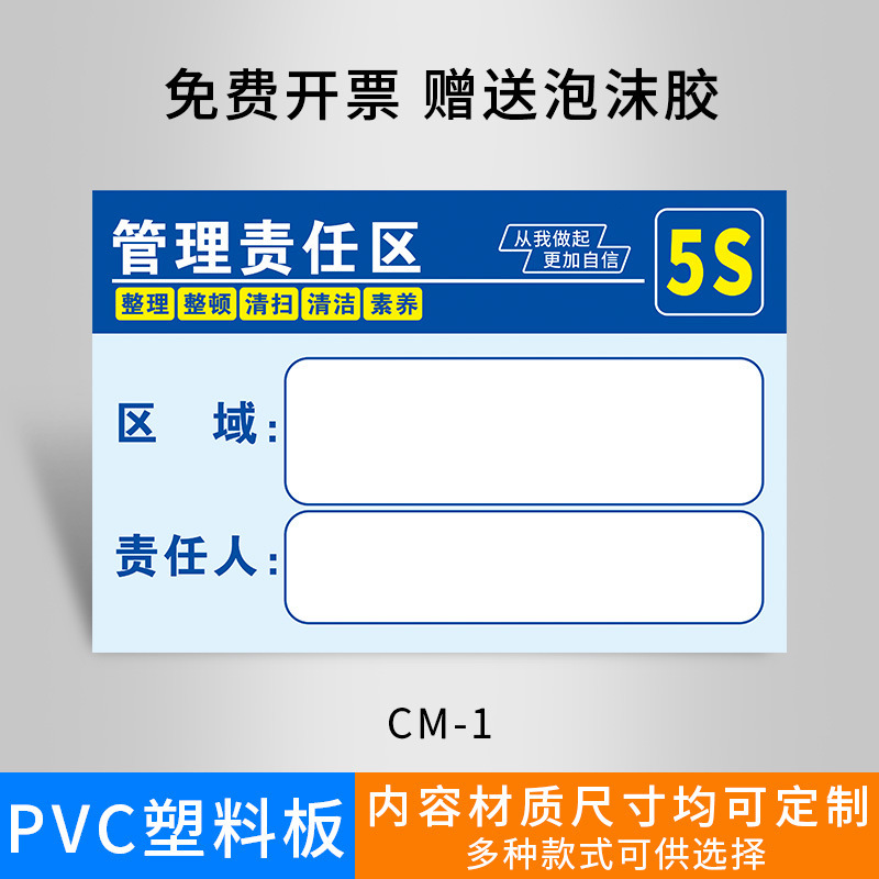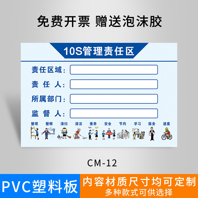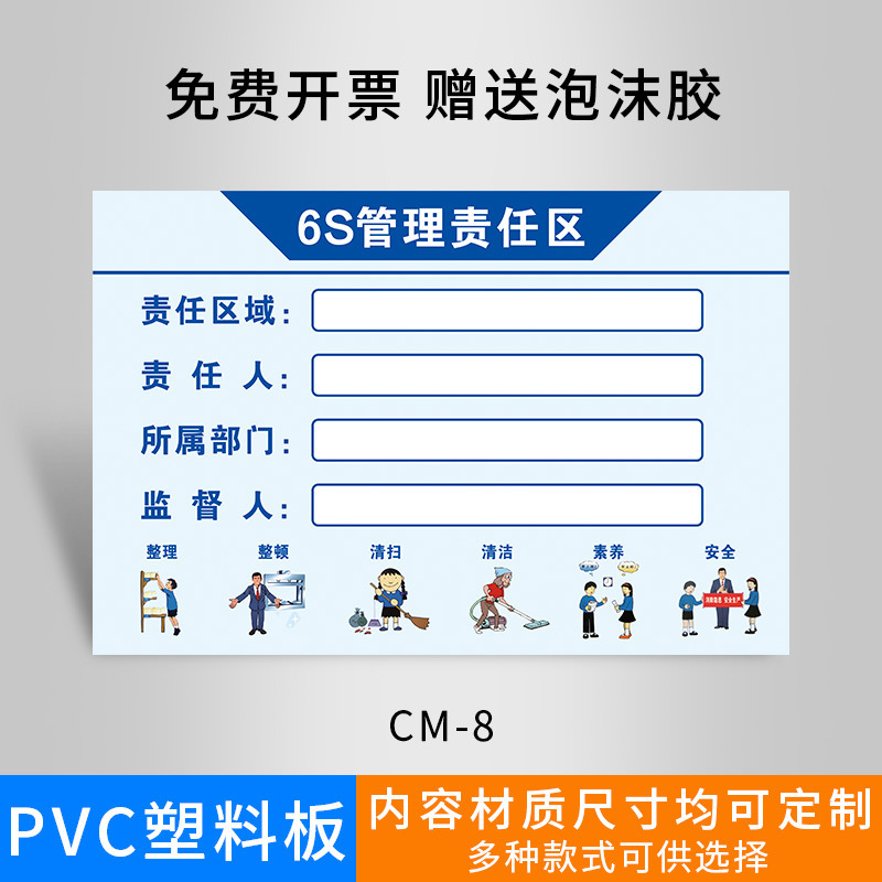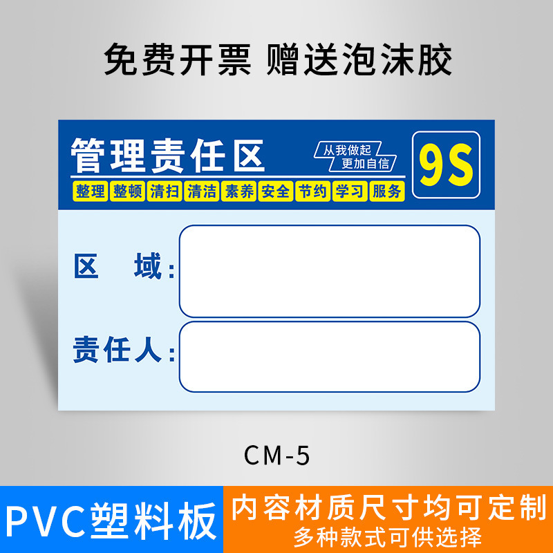 • 300*400mm * 5S 지역 책임 카드 a * 1mmPVC 보드 스티커 * 블록