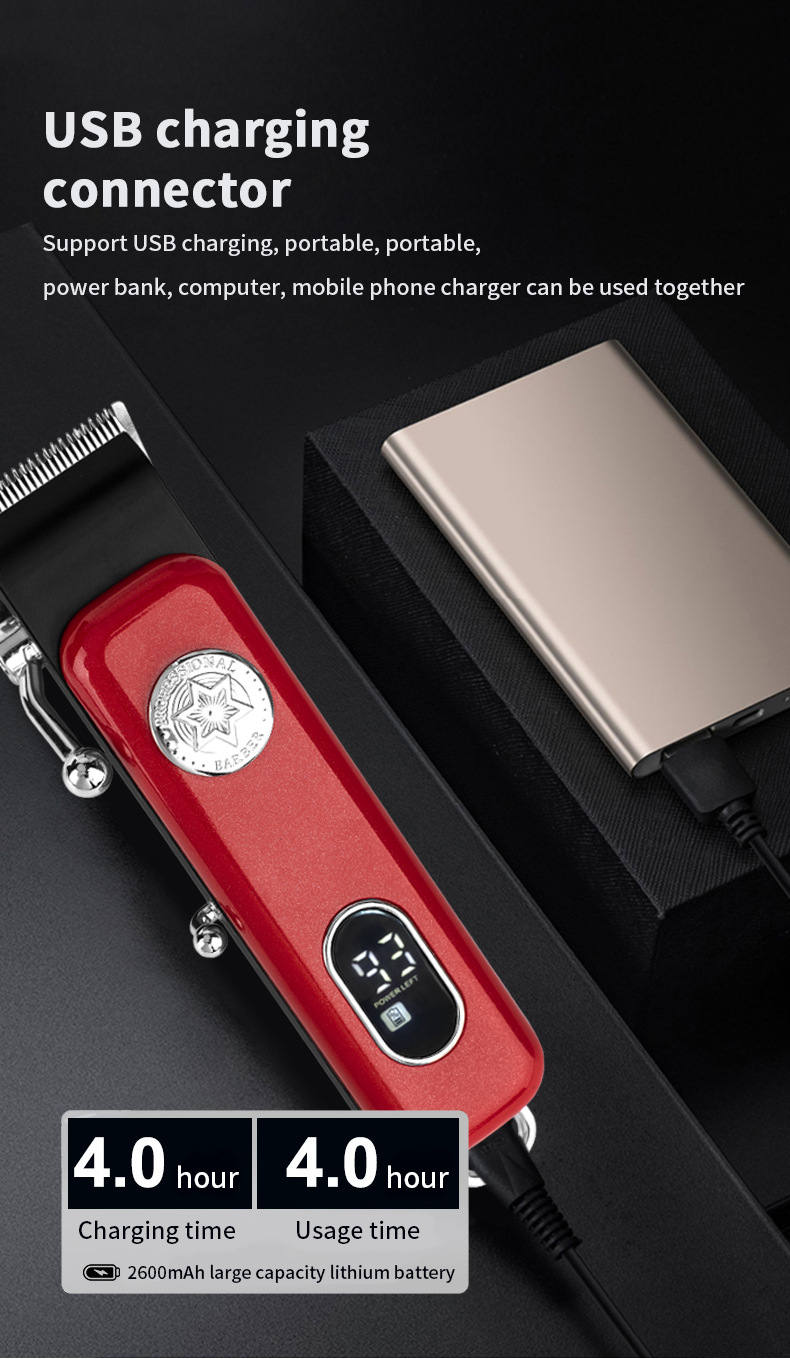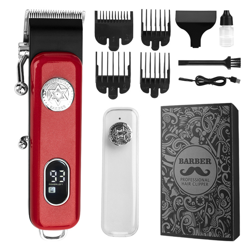 크로스 보더 새로운 전기 헤어 클리퍼 LED LCD 디지털 디스플레이 전문 교체 가능한 얼굴 커버 오일 헤드 전기 클리퍼 헤어 클리퍼스토어 가기