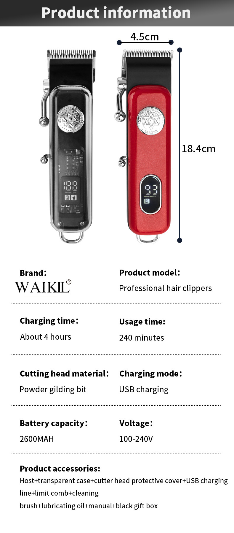 크로스 보더 새로운 전기 헤어 클리퍼 LED LCD 디지털 디스플레이 전문 교체 가능한 얼굴 커버 오일 헤드 전기 클리퍼 헤어 클리퍼