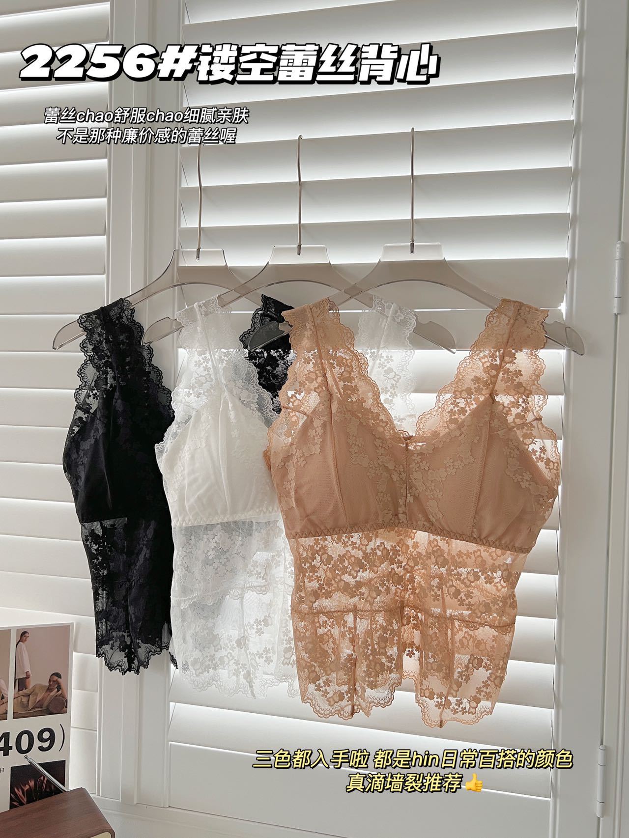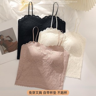 2023년 신상 레이스 백리스 뷔스티에, 가슴 패드 내장, 중간 길이, 다용도 레이스 와이드 숄더 베이스 레이스탑, 통기성 좋음스토어 가기