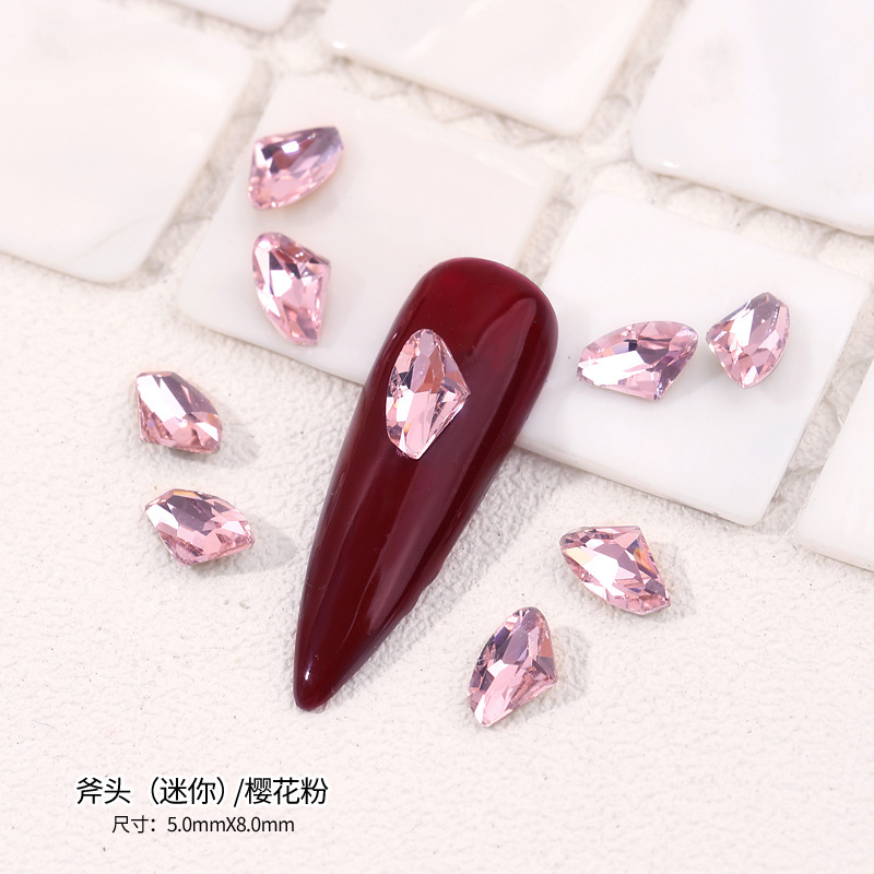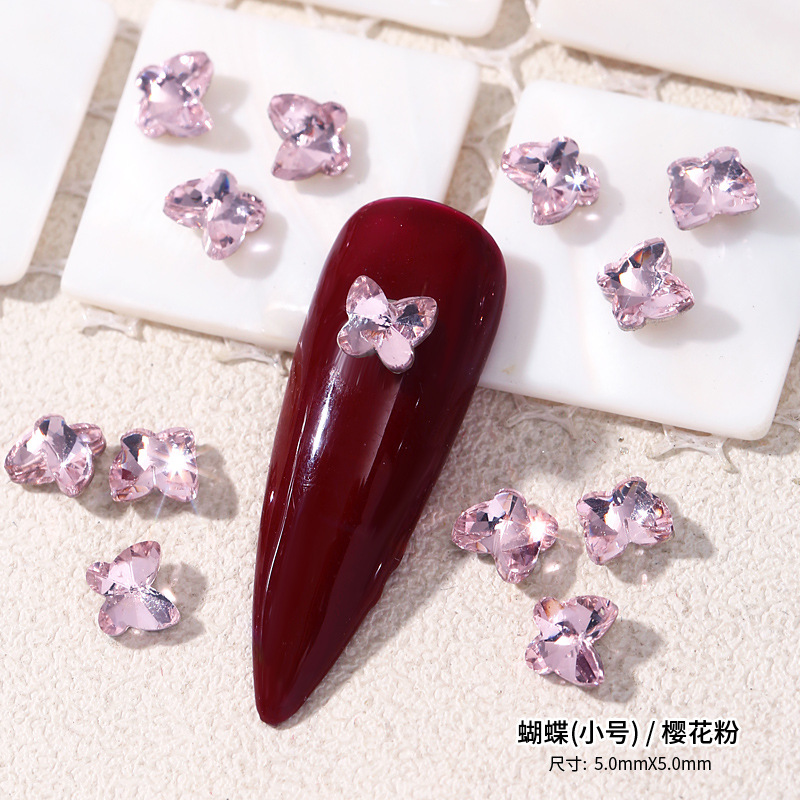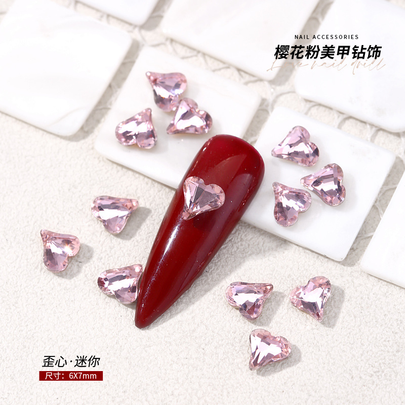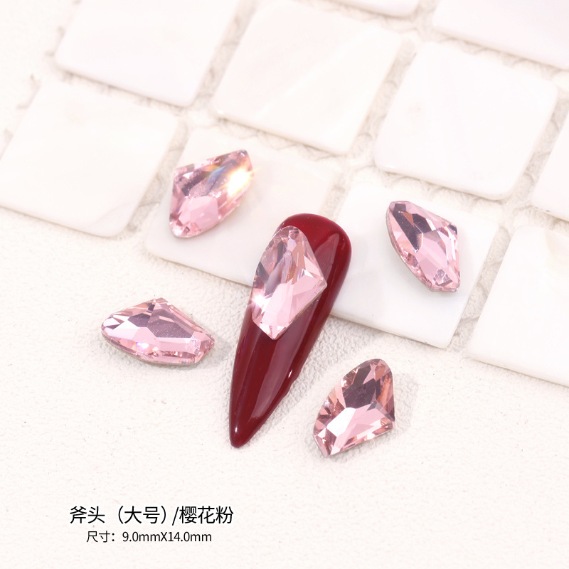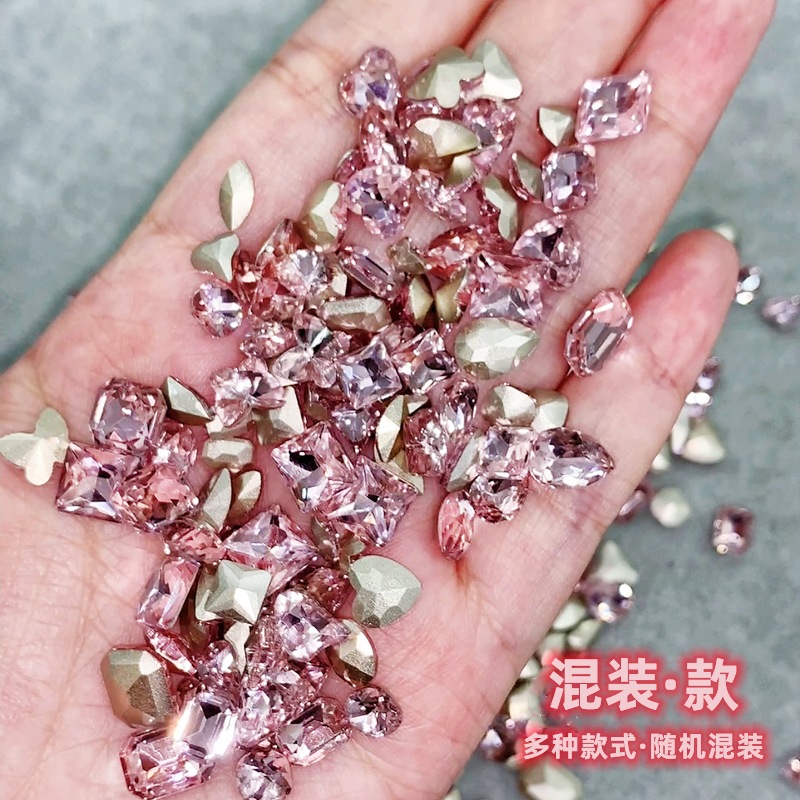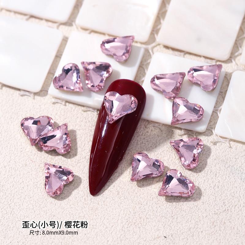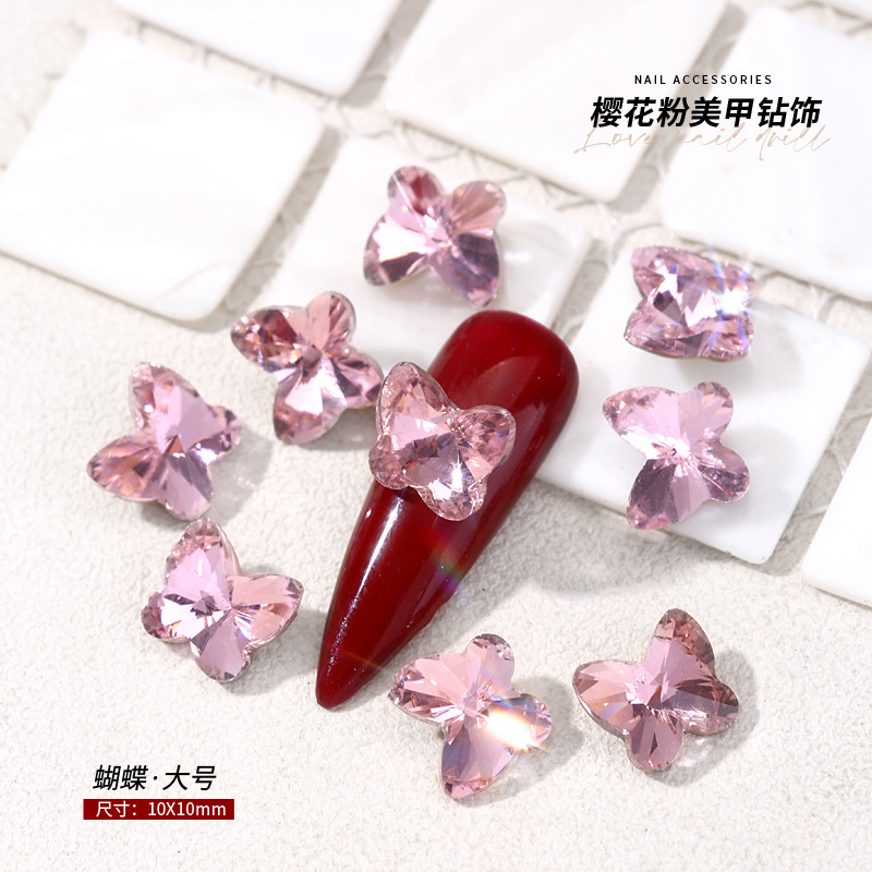 연분홍색 벚꽃핑크색 뾰족한 바닥의 특수 모양 다이아몬드, 하트 모양, 둥근 사각형, 눈꽃, 설탕, 나비 모양 K9 유리 네일아트 장식품 도매스토어 가기