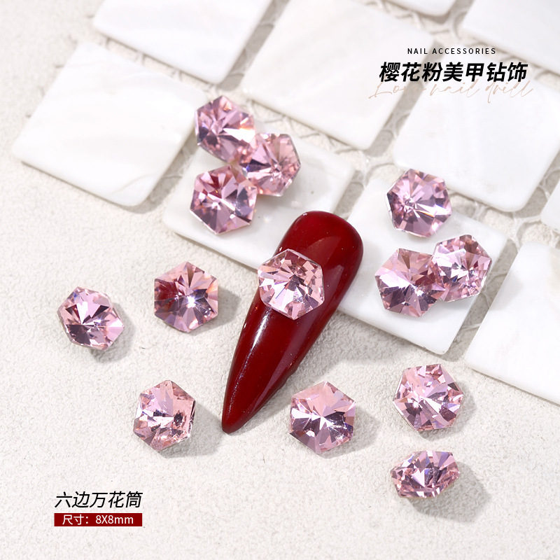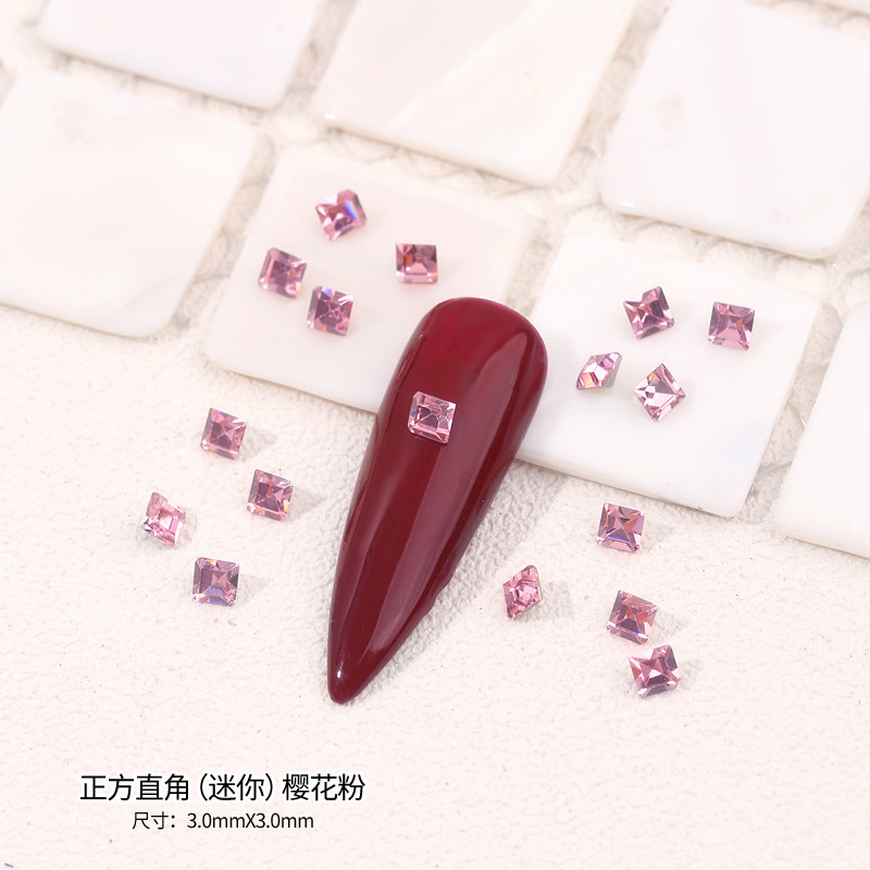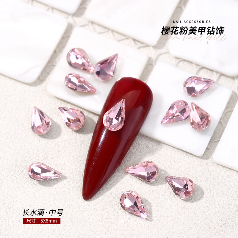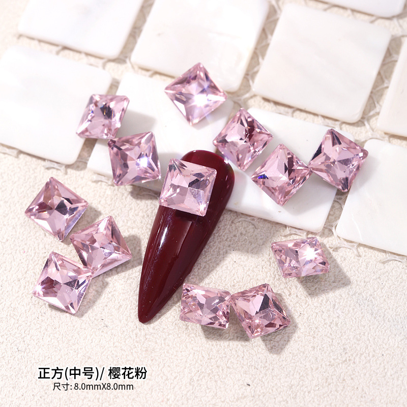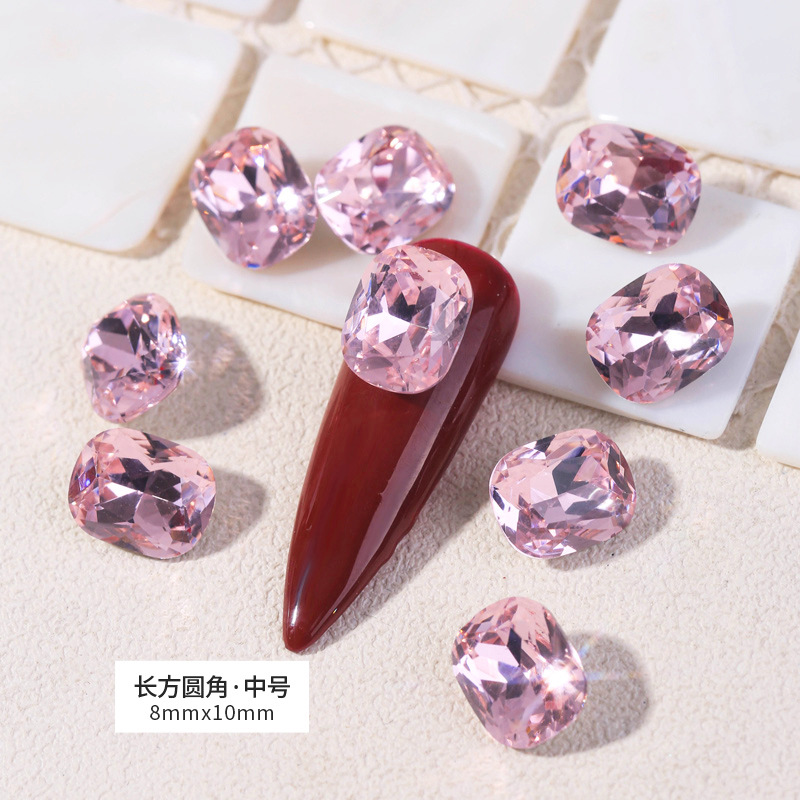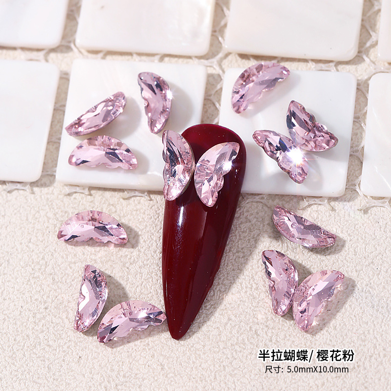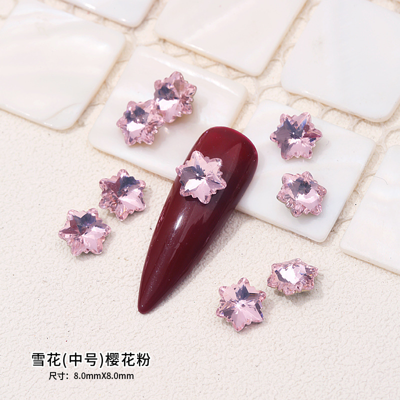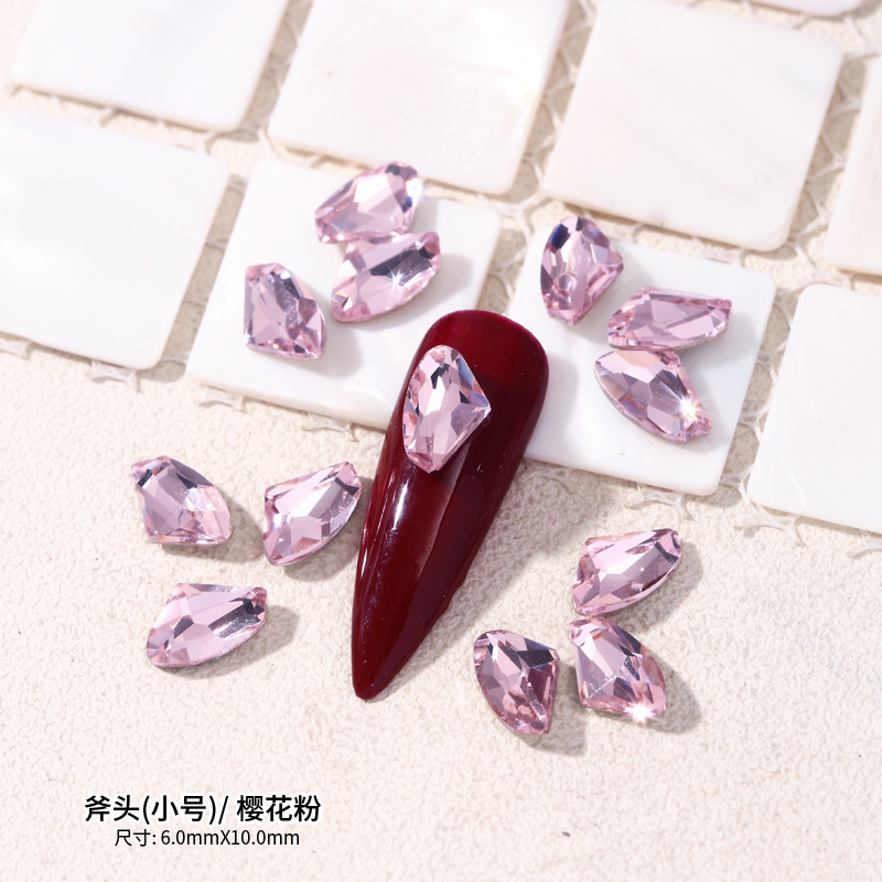 연분홍색 벚꽃핑크색 뾰족한 바닥의 특수 모양 다이아몬드, 하트 모양, 둥근 사각형, 눈꽃, 설탕, 나비 모양 K9 유리 네일아트 장식품 도매스토어 가기