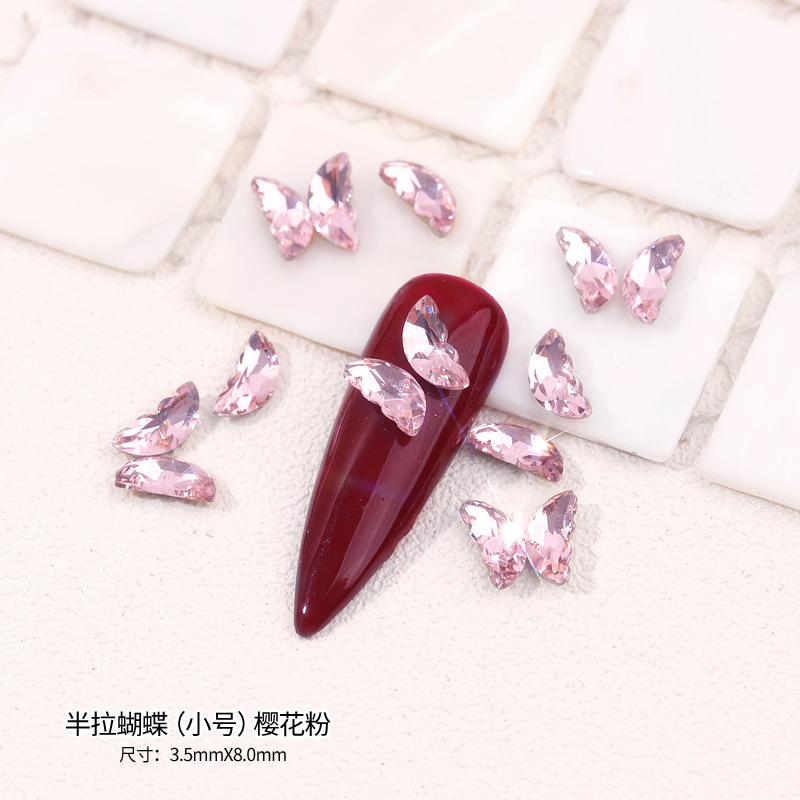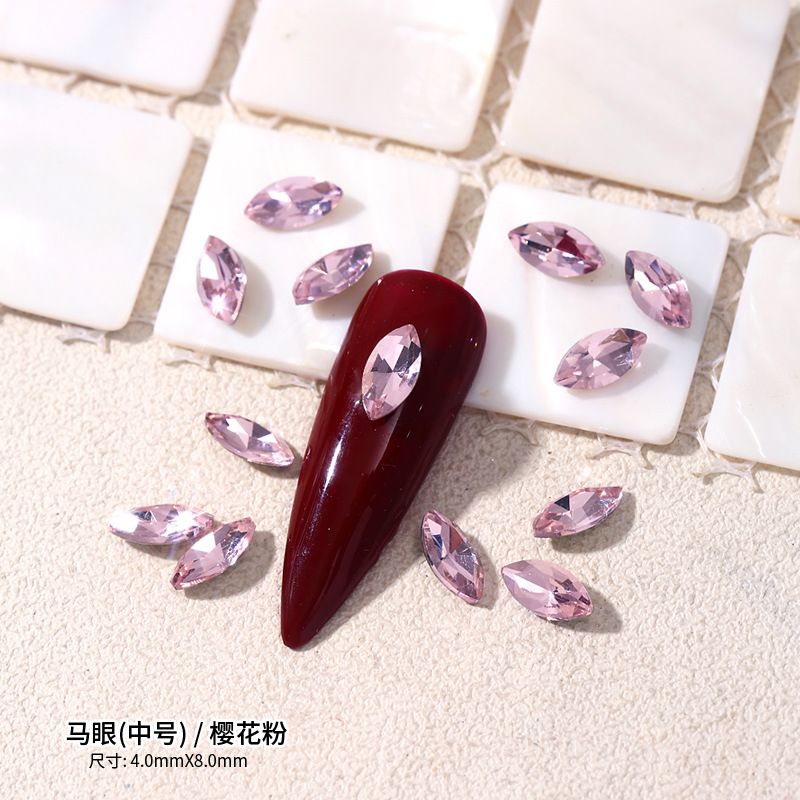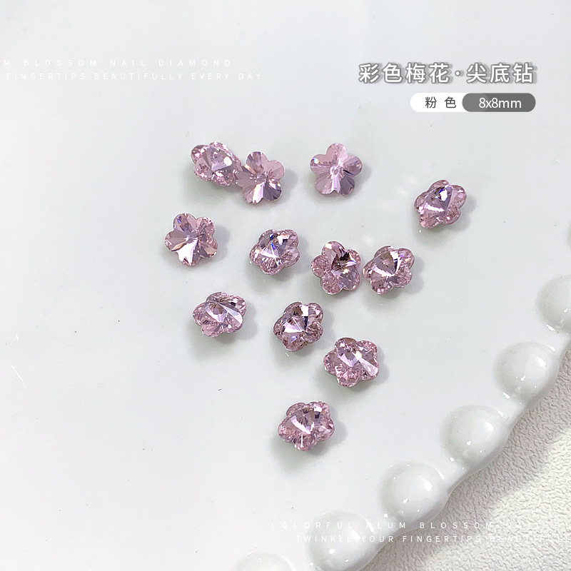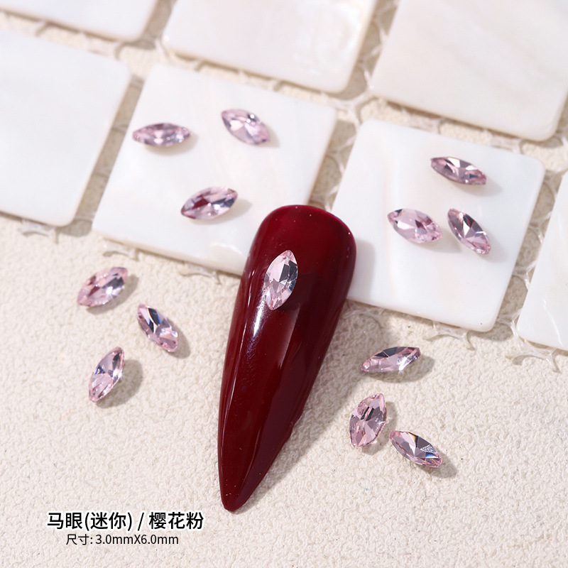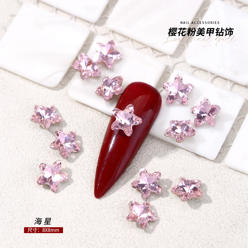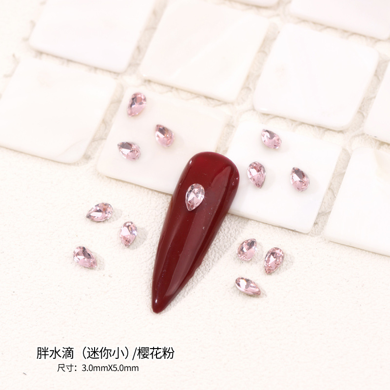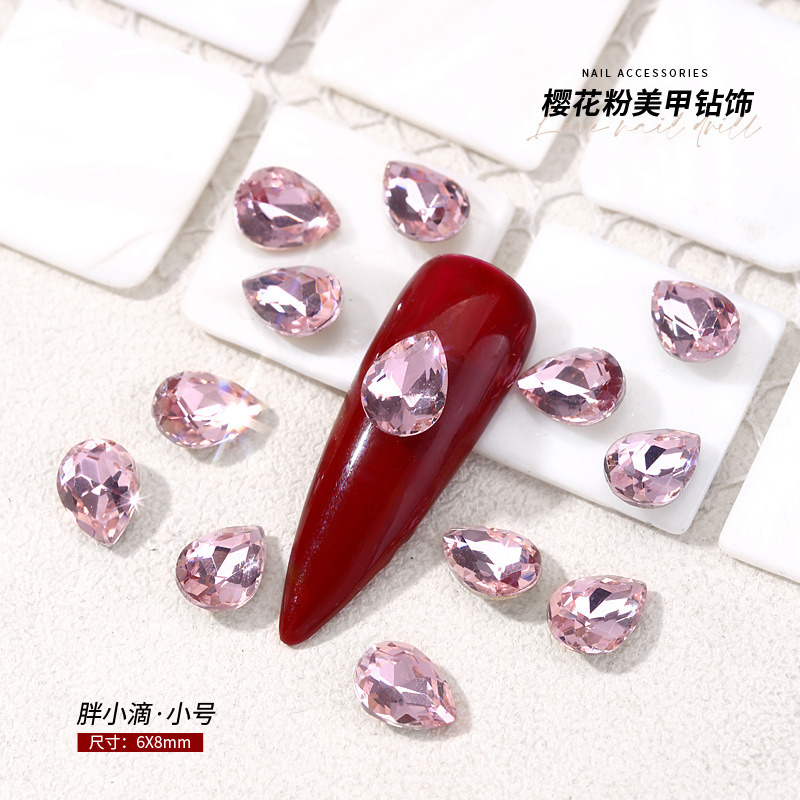 연분홍색 벚꽃핑크색 뾰족한 바닥의 특수 모양 다이아몬드, 하트 모양, 둥근 사각형, 눈꽃, 설탕, 나비 모양 K9 유리 네일아트 장식품 도매스토어 가기