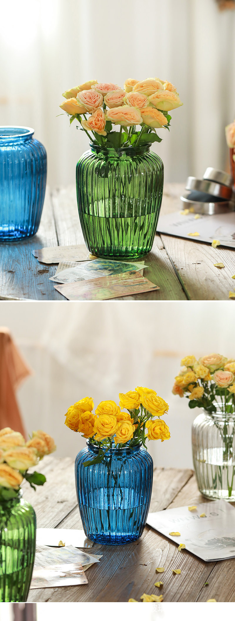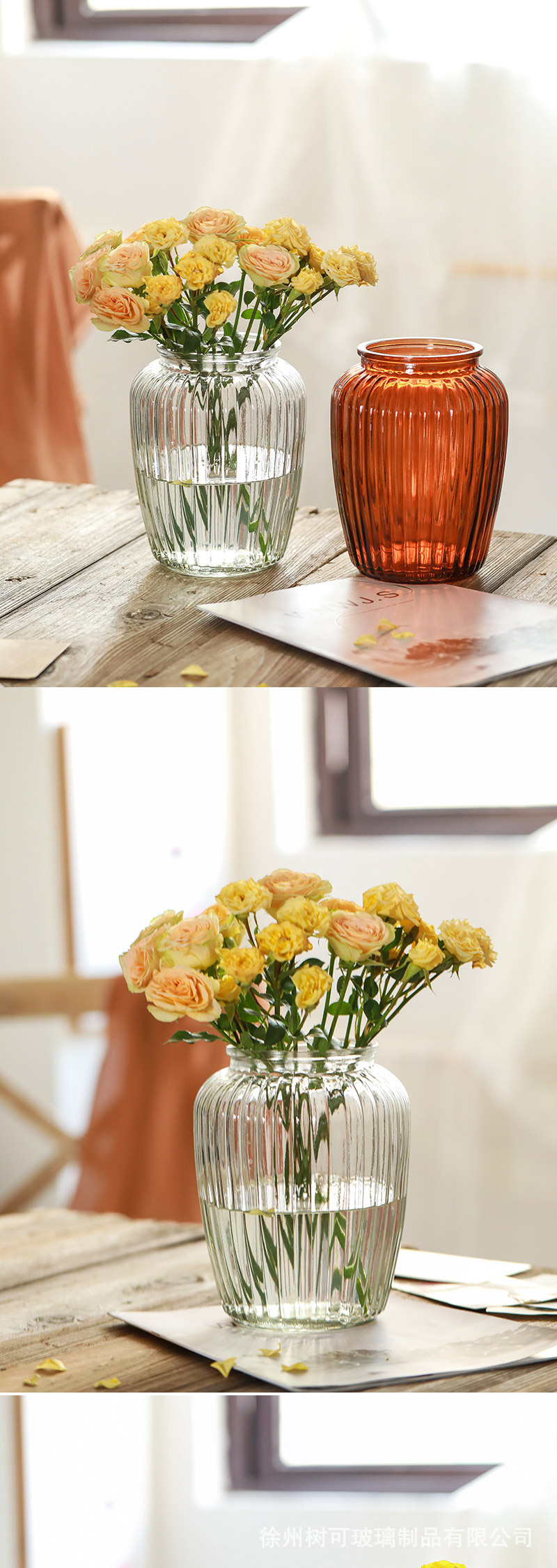 크리 에이 티브 스테인드 글라스 꽃병 스타일 큰 배꼽 호박 수경 꽃 실내 데스크탑 말린 꽃 장식