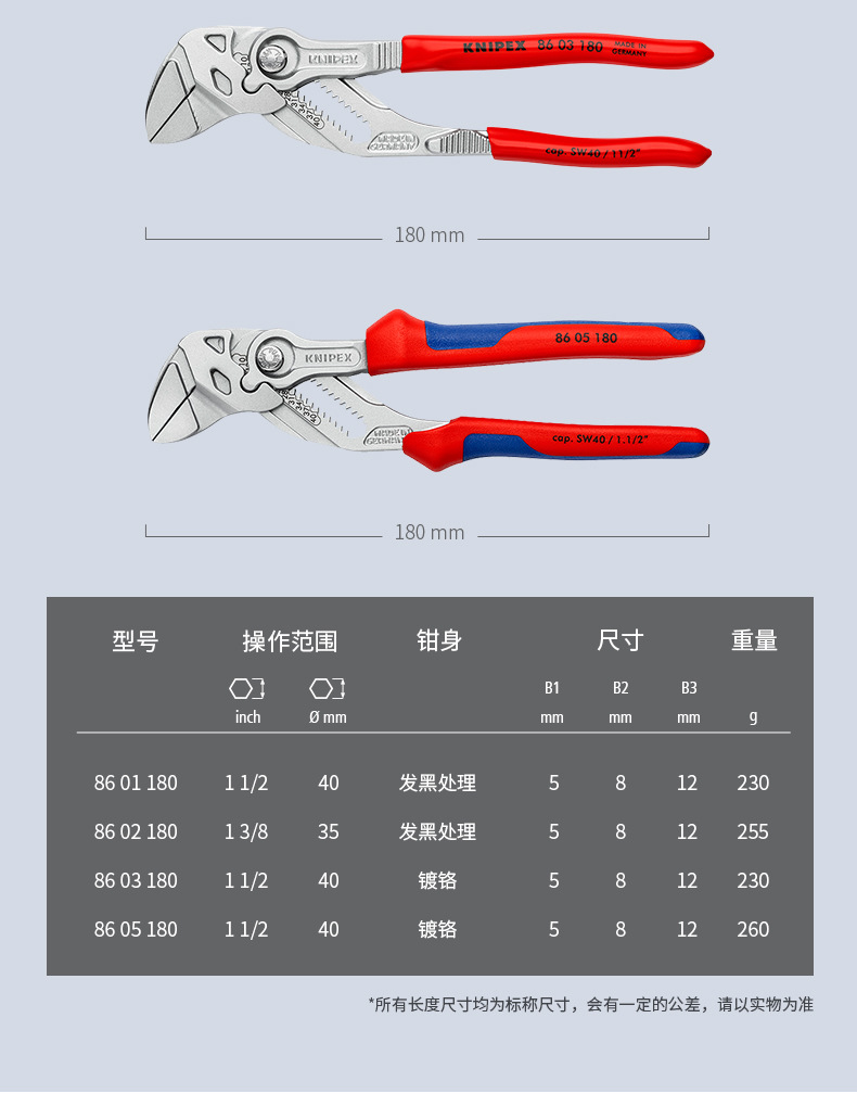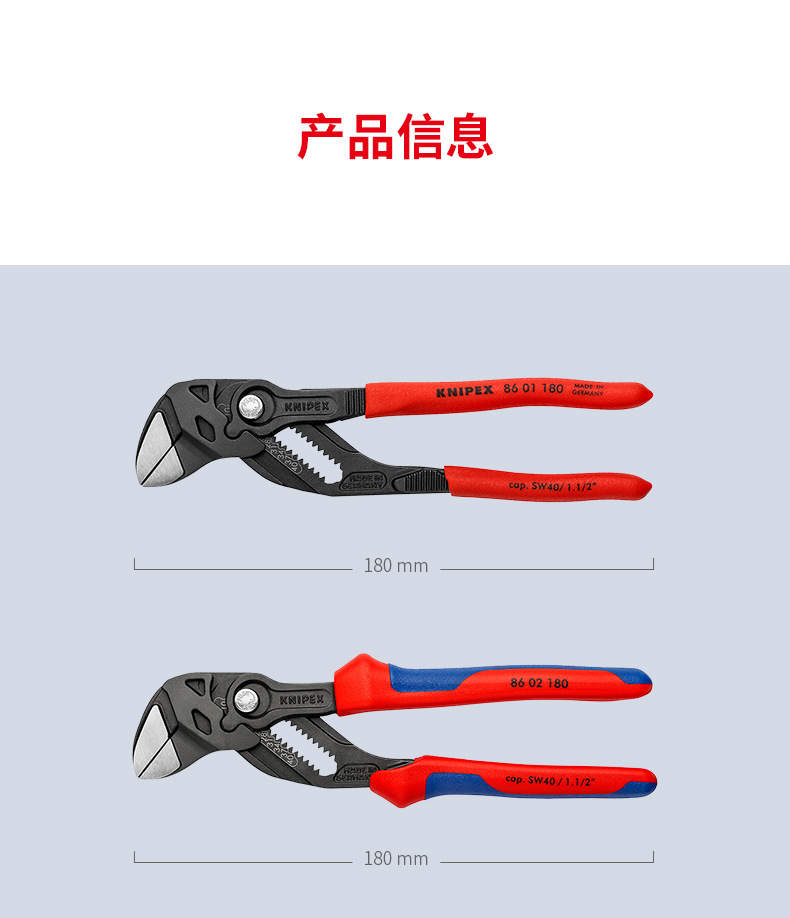 독일 KNIPEX Kennipak 86 01 180 180 mm7 인치 클램프 렌치 병렬 클램프스토어 가기