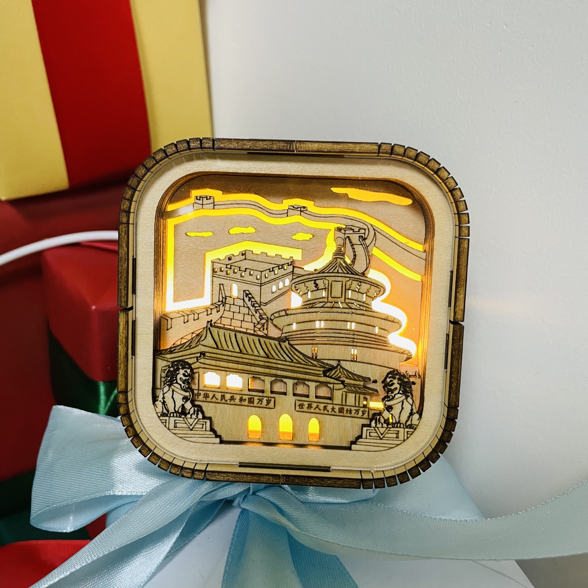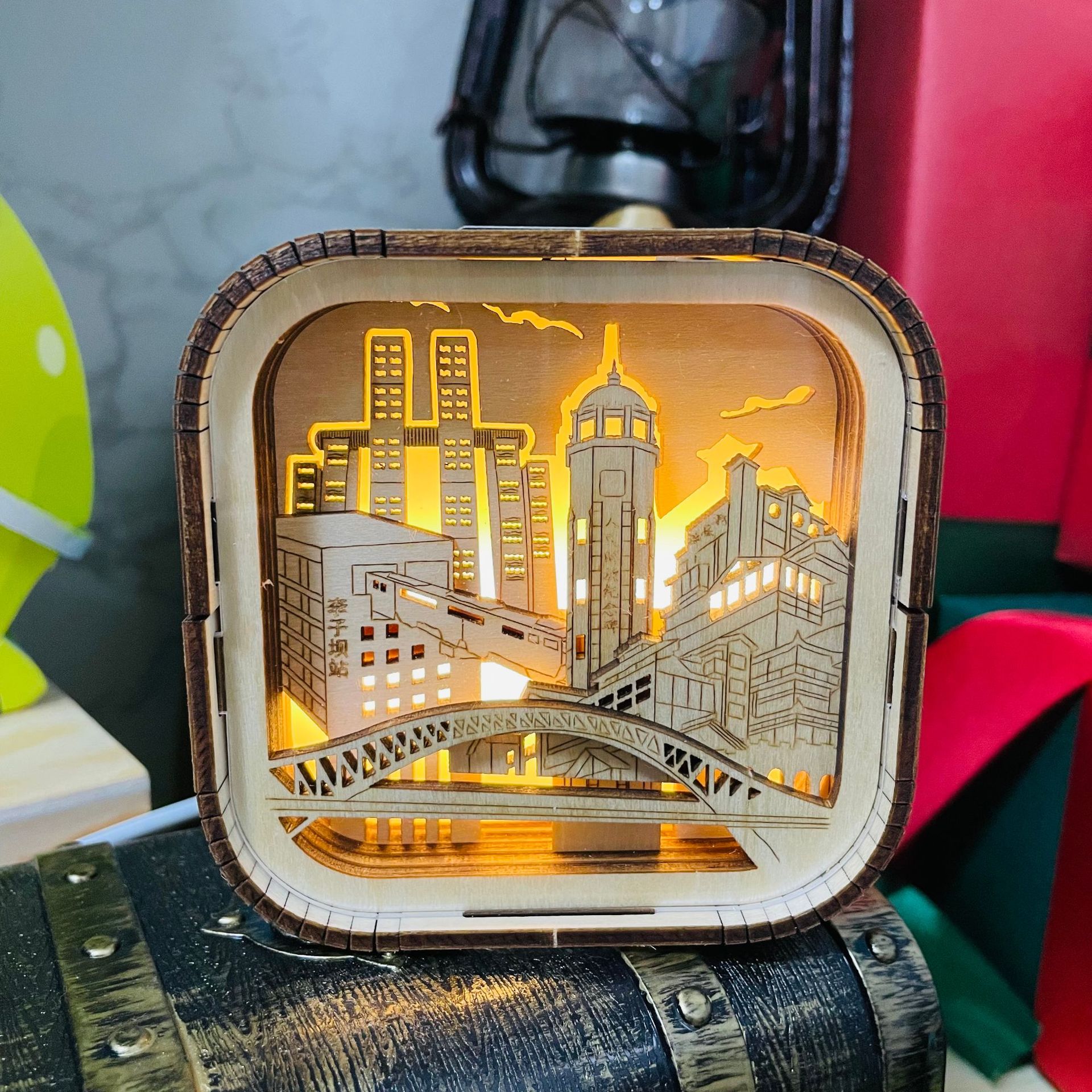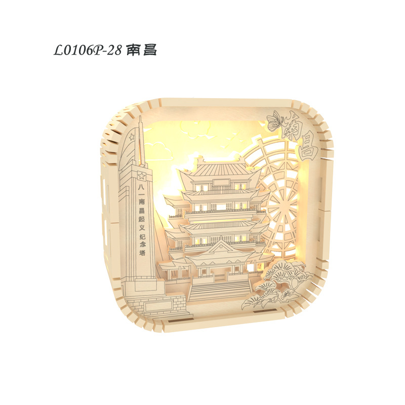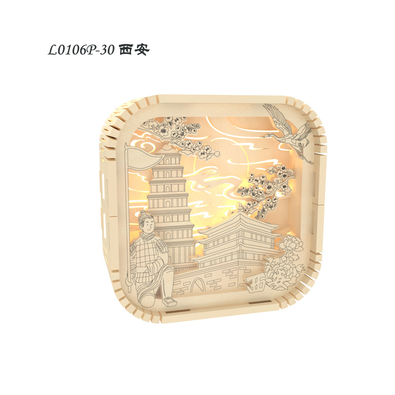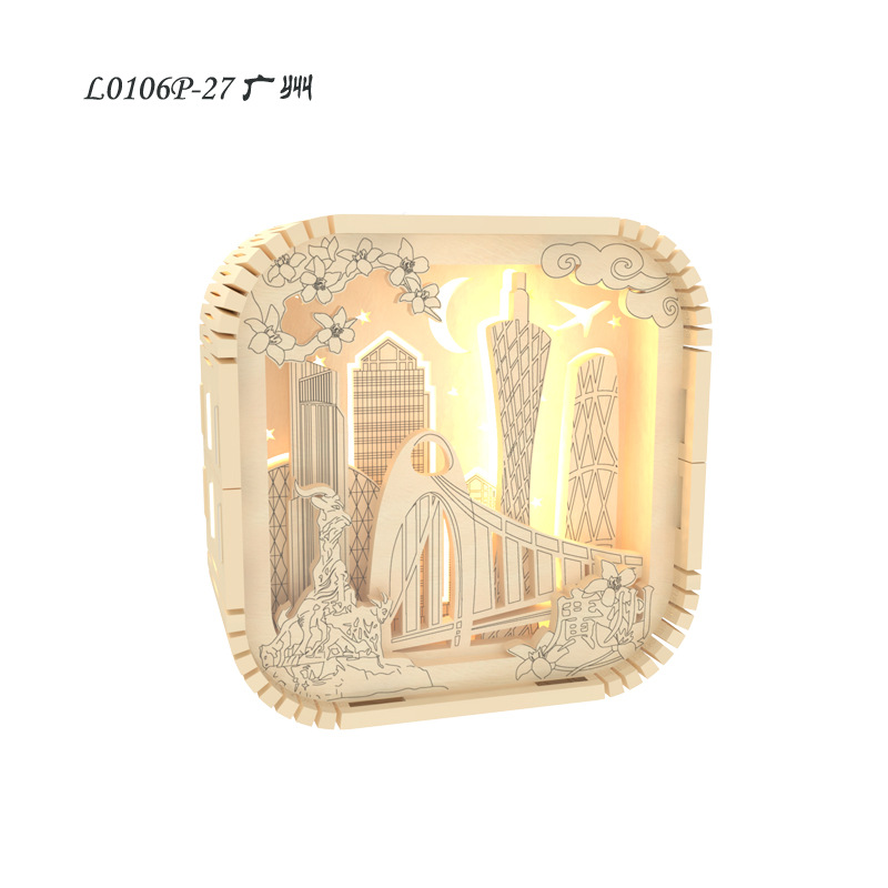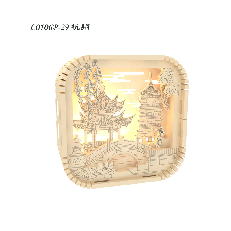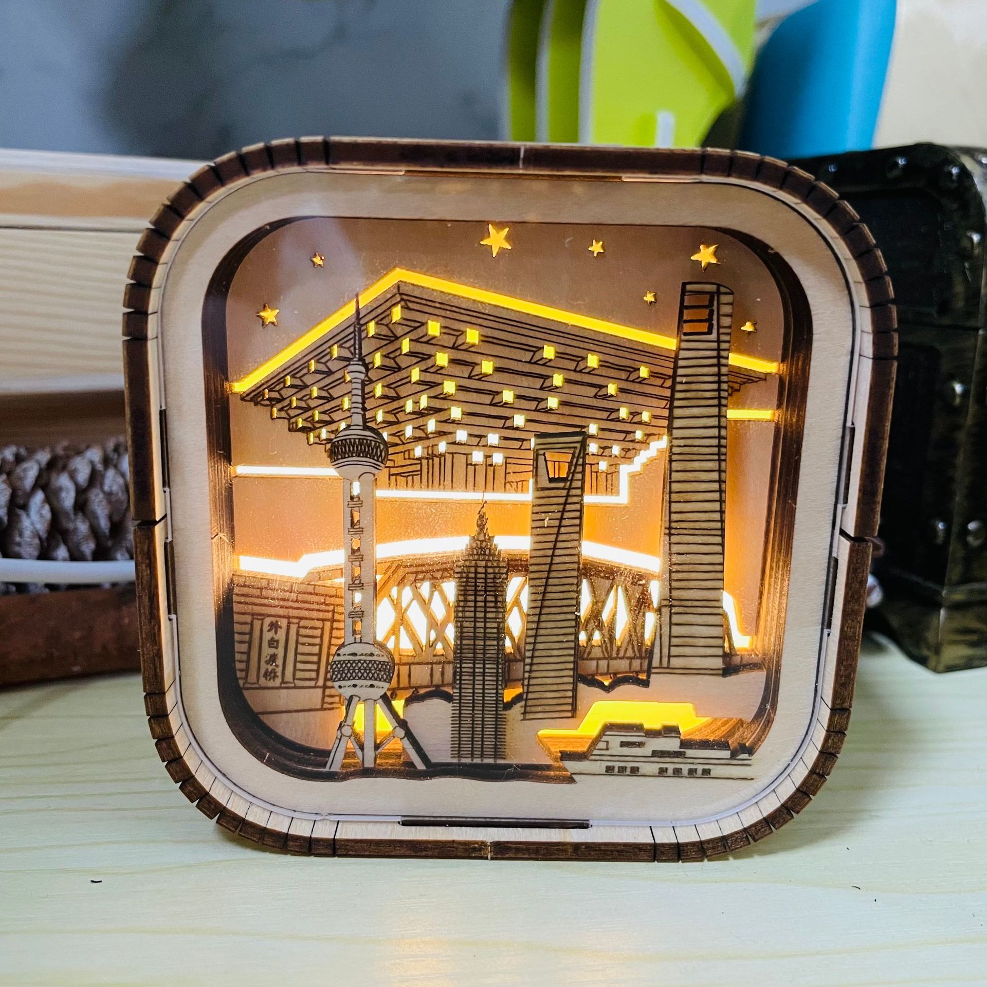 창의적인 시안과 우한 목재 조립식 야간등 도시 라인 퍼즐 초등학교 지리 교구 목조 조각등