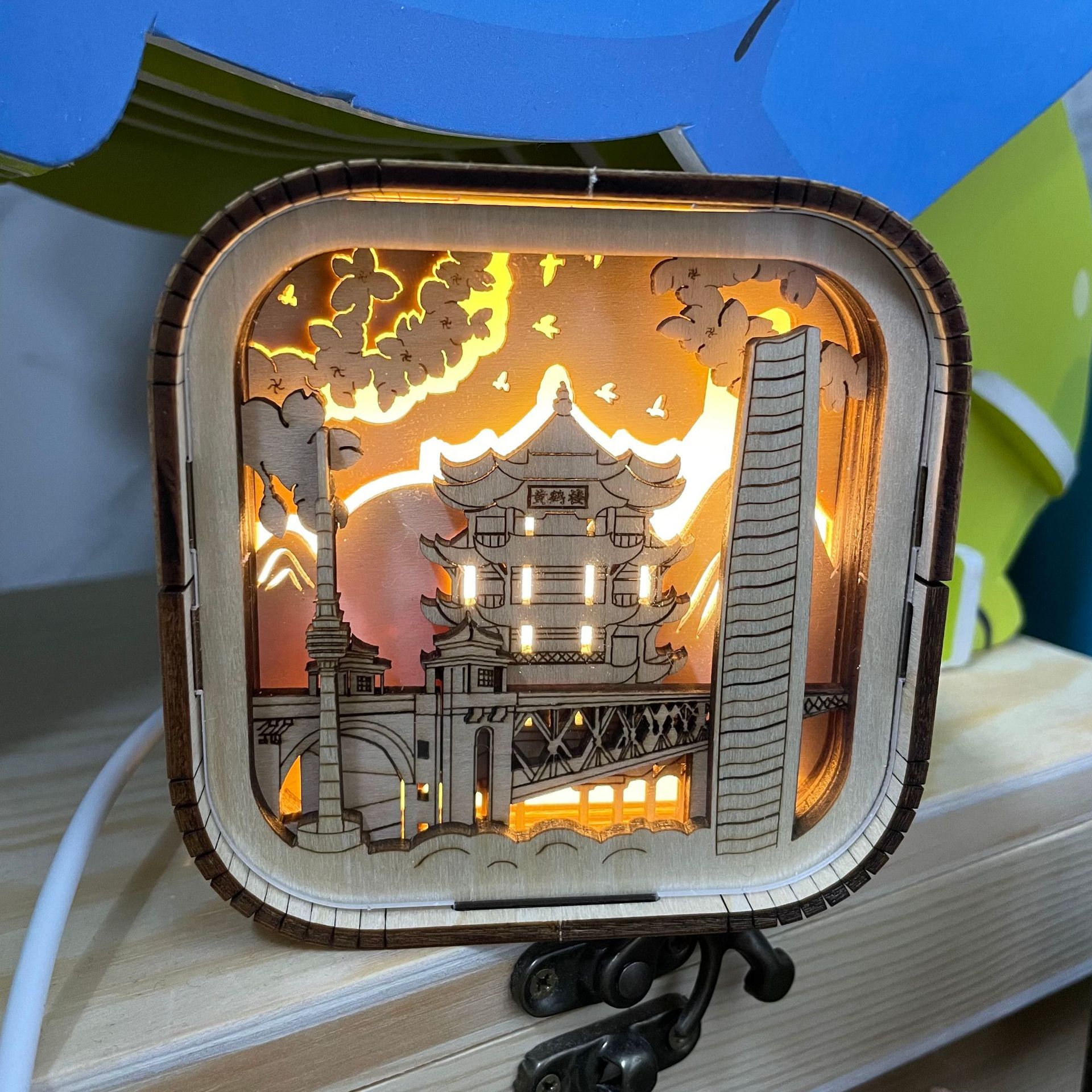 창의적인 시안과 우한 목재 조립식 야간등 도시 라인 퍼즐 초등학교 지리 교구 목조 조각등스토어 가기
