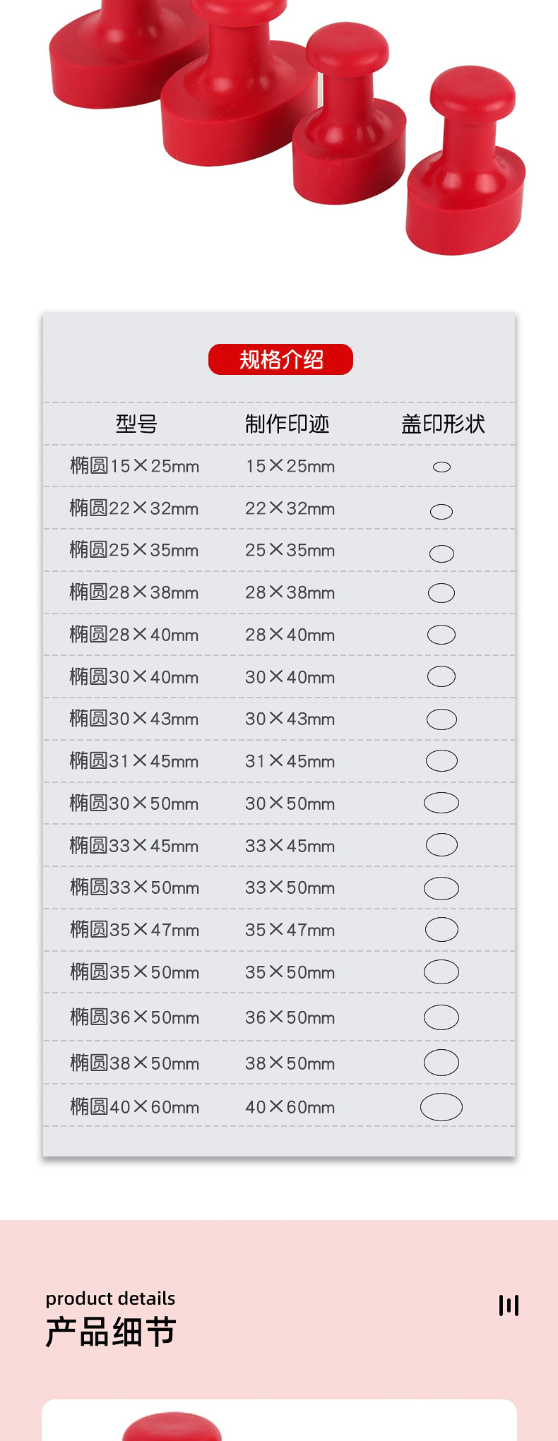 Gu'an 레드 고무 씰 고무 스탬프 타원형 손잡이 다양한 사양 씰 재료 도매스토어 가기