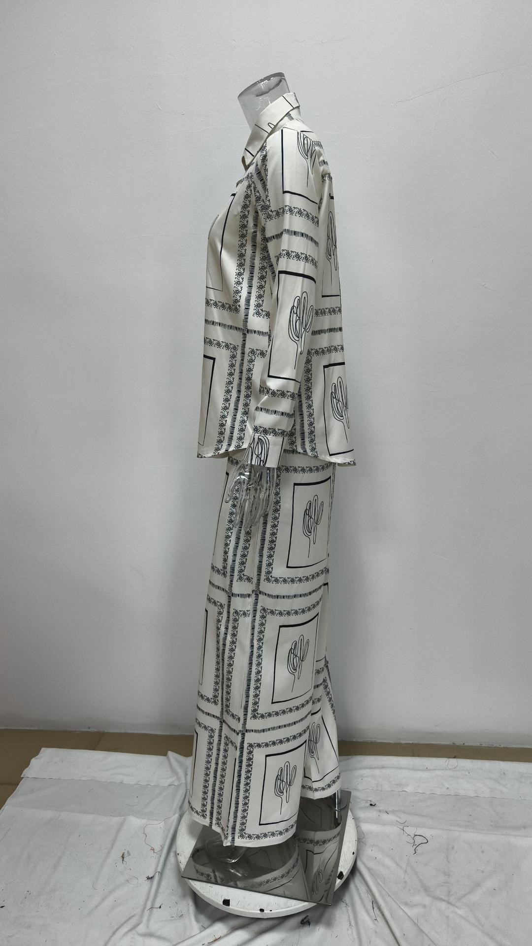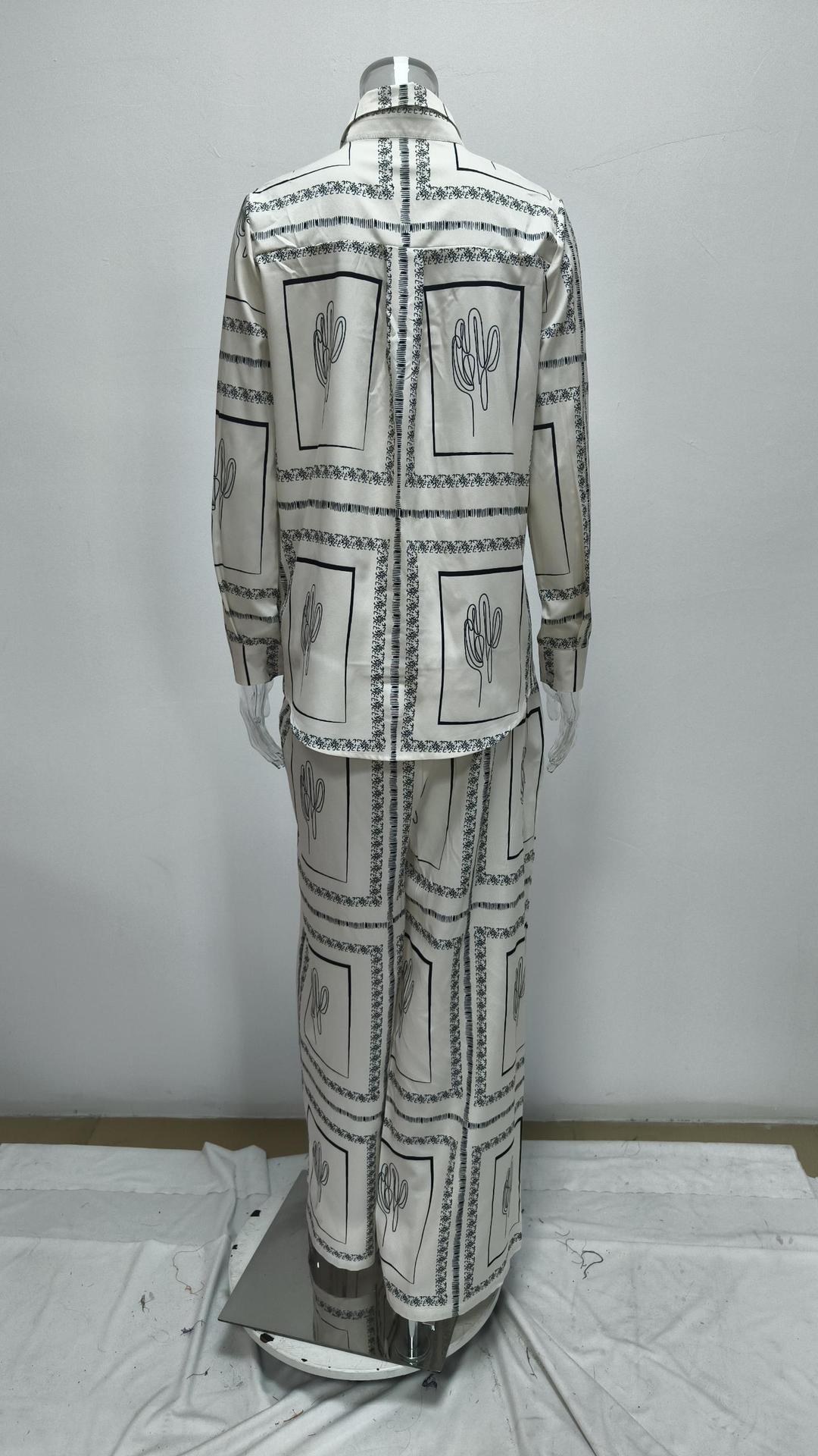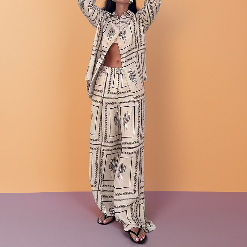 2026년 봄 신상품, 유럽 및 미국 해외 무역 여성복, 캐주얼 통근 프린트 셔츠와 바지 패션 세트