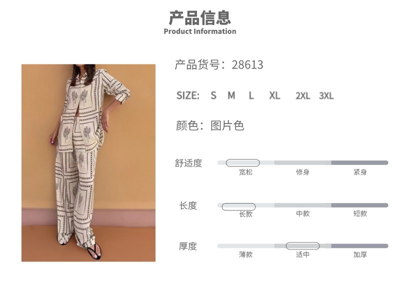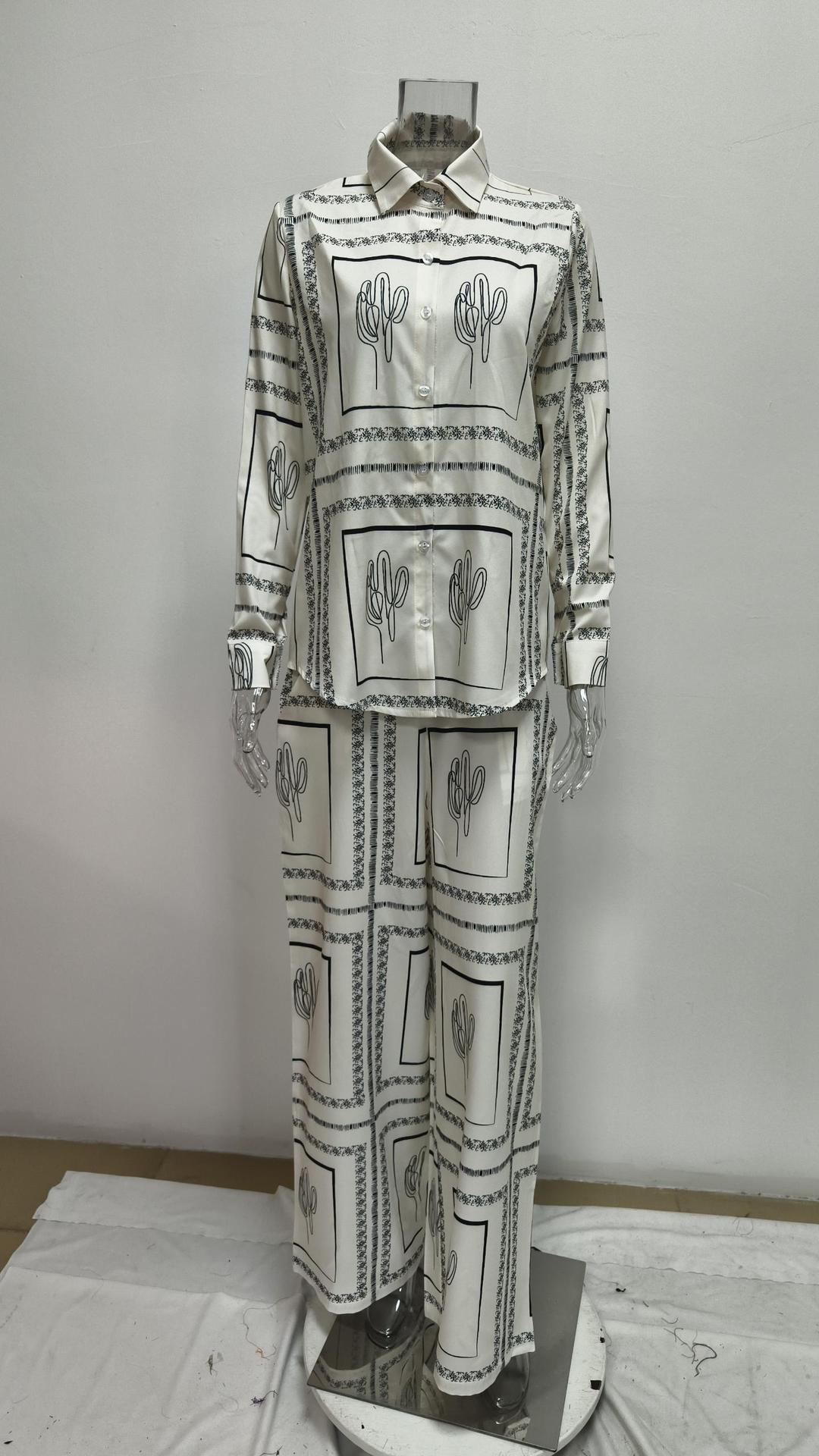 2026년 봄 신상품, 유럽 및 미국 해외 무역 여성복, 캐주얼 통근 프린트 셔츠와 바지 패션 세트스토어 가기