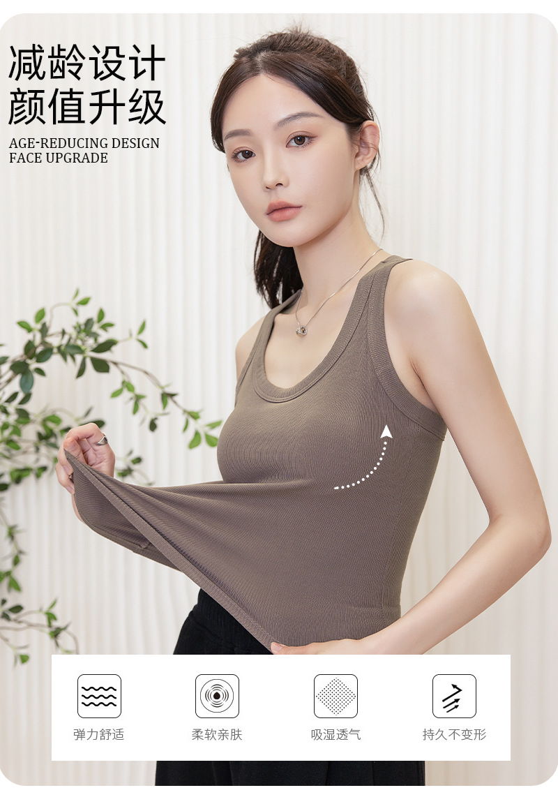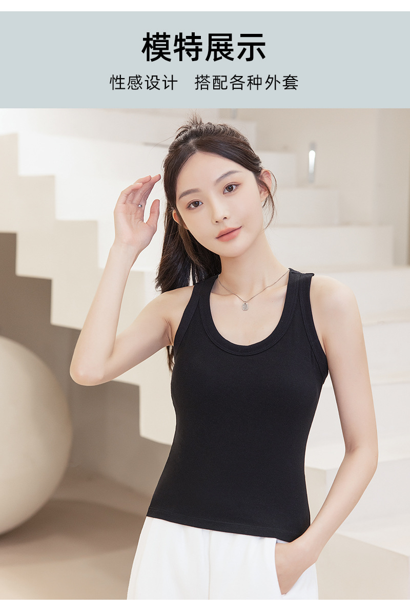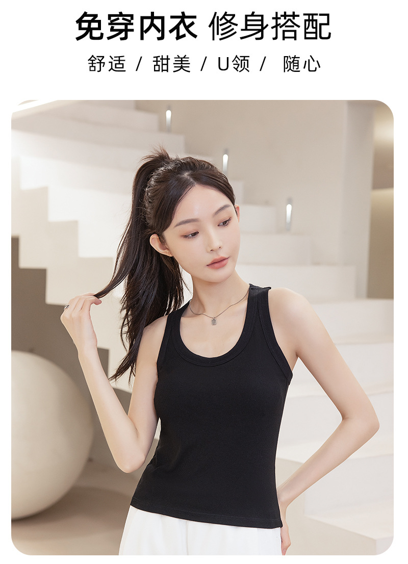 브라탑 스타일의 탄력 밴드가 내장된 민소매 여름 상의, 외출용으로도 활용 가능한 스포츠 및 캐주얼 여성용