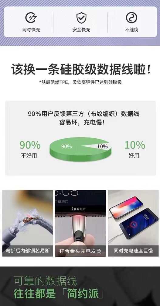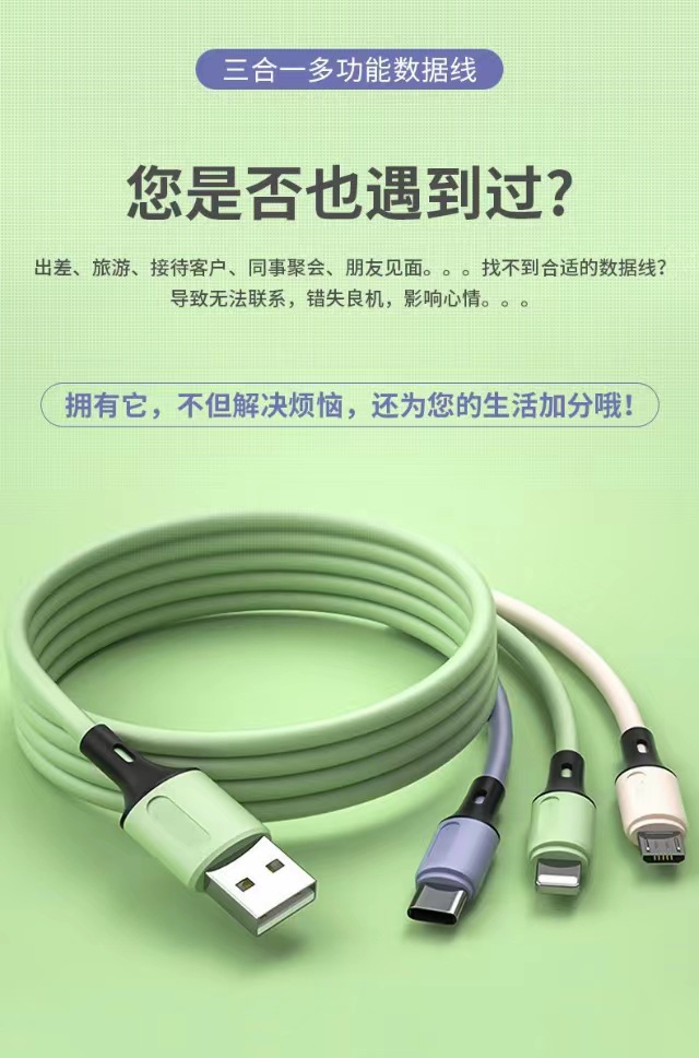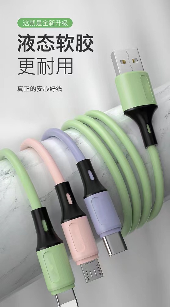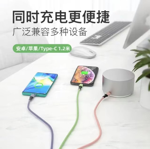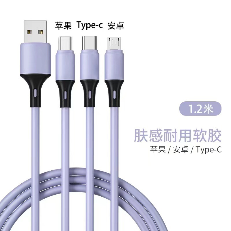 액체 실리콘 1 드래그 3 고속 충전 데이터 라인 애플 안드로이드 화웨이 휴대 전화 선물 충전 라인 도매