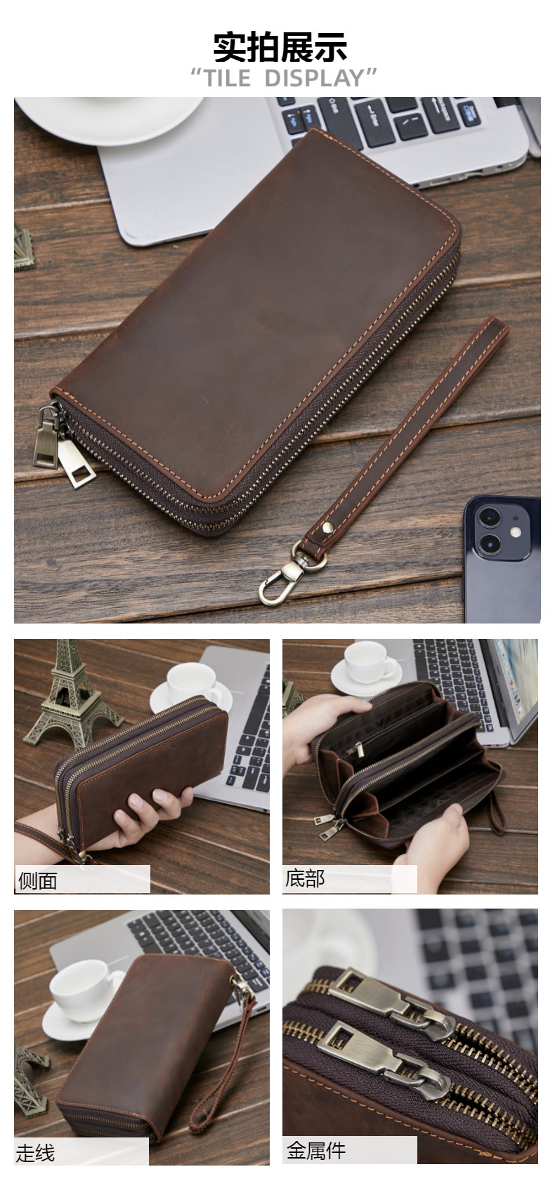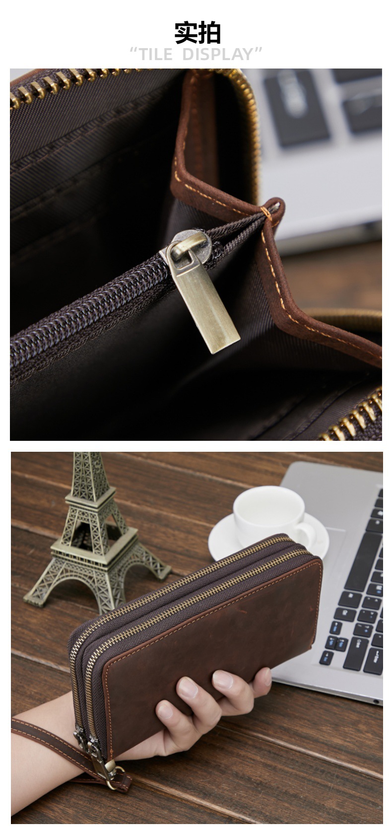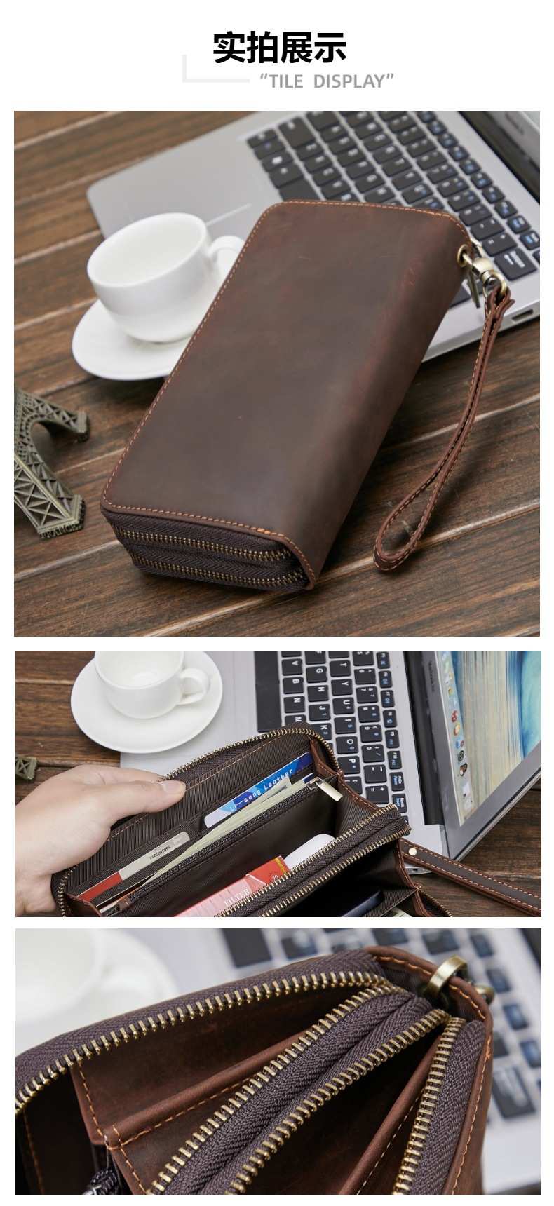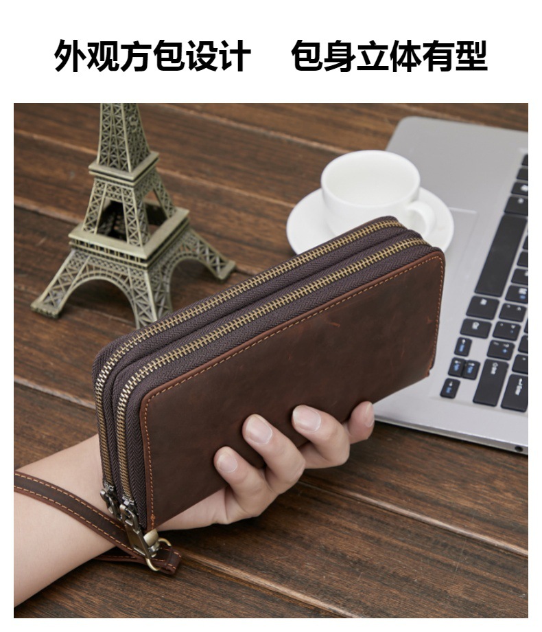 아마존의 인기 남성용 정품 가죽 지갑 Crazy Horse 가죽 장 지갑 복고풍 동전 지갑 소가죽 클러치 지갑