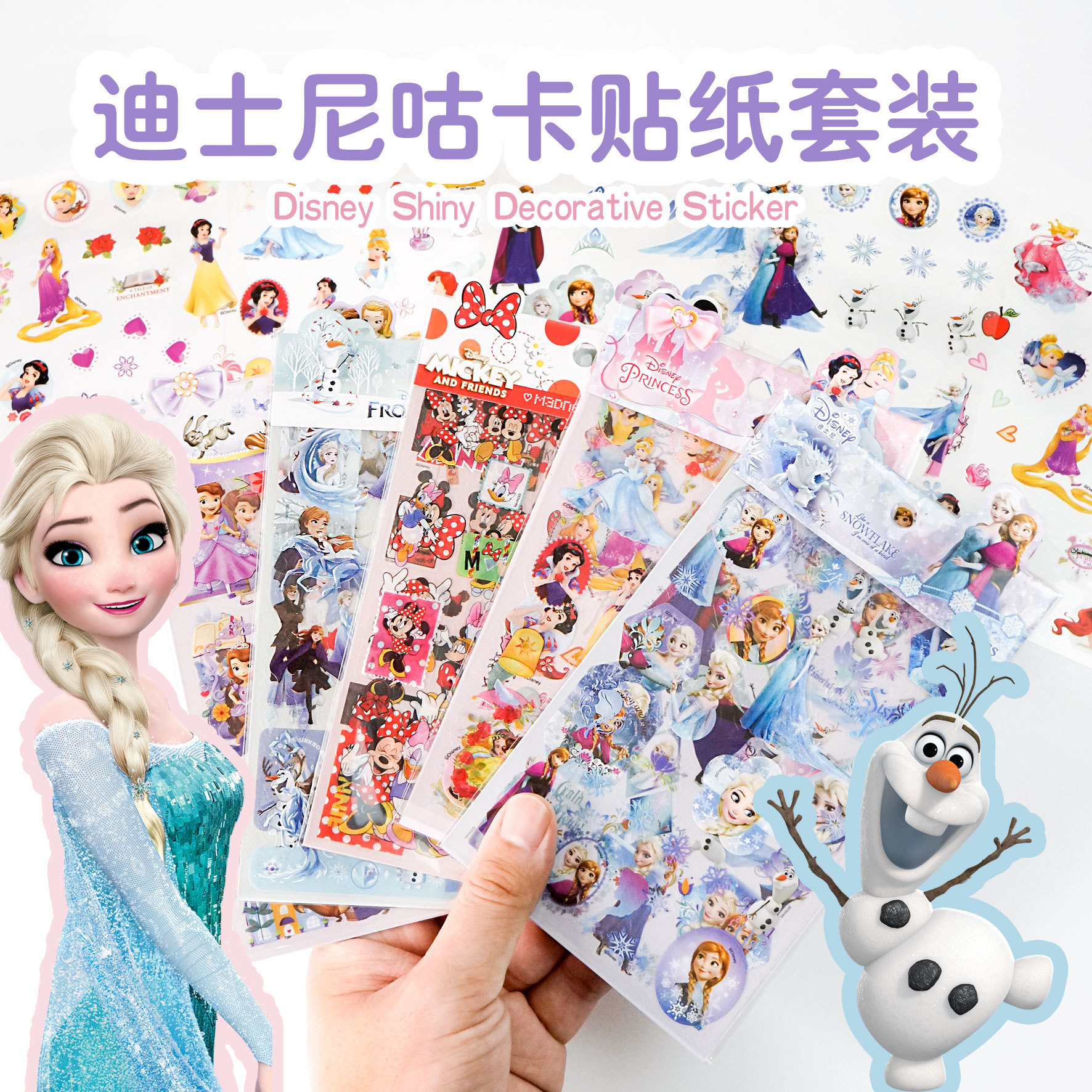 디즈니 구 카드 스티커 세트 4 조각 공주 만화 반짝 이는 레이저 투명 PVC 스티커 손 계정 재료 도매