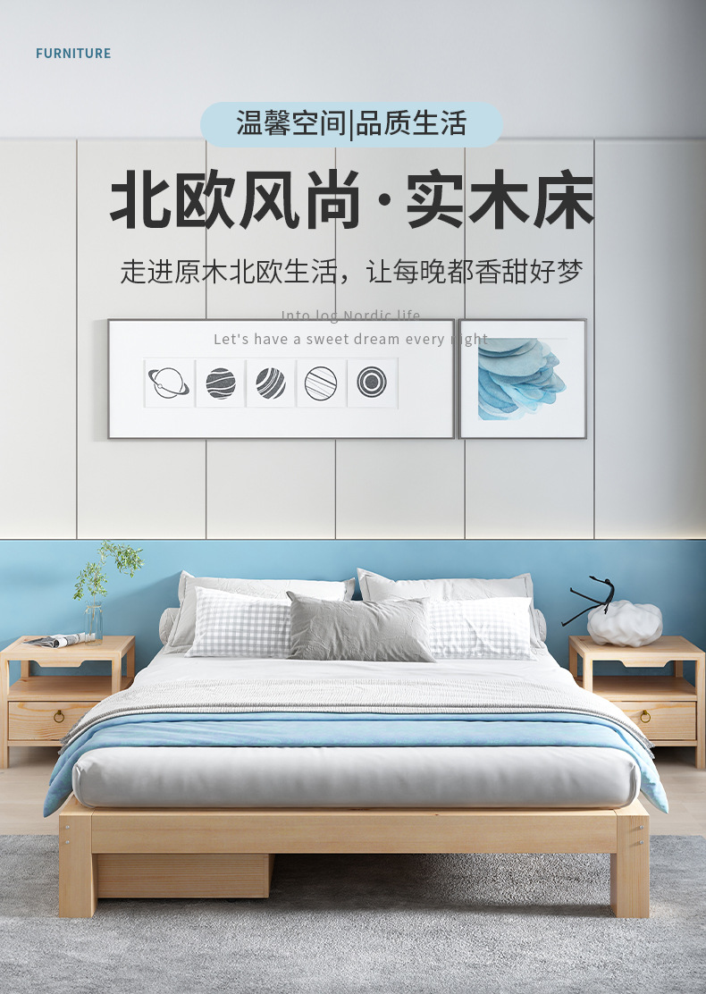 모든 단단한 나무 심플 1.5 m 더블 침대 경제적 인 모던 심플 1.8m 렌탈 다다미 싱글 1.2 침대 프레임스토어 가기